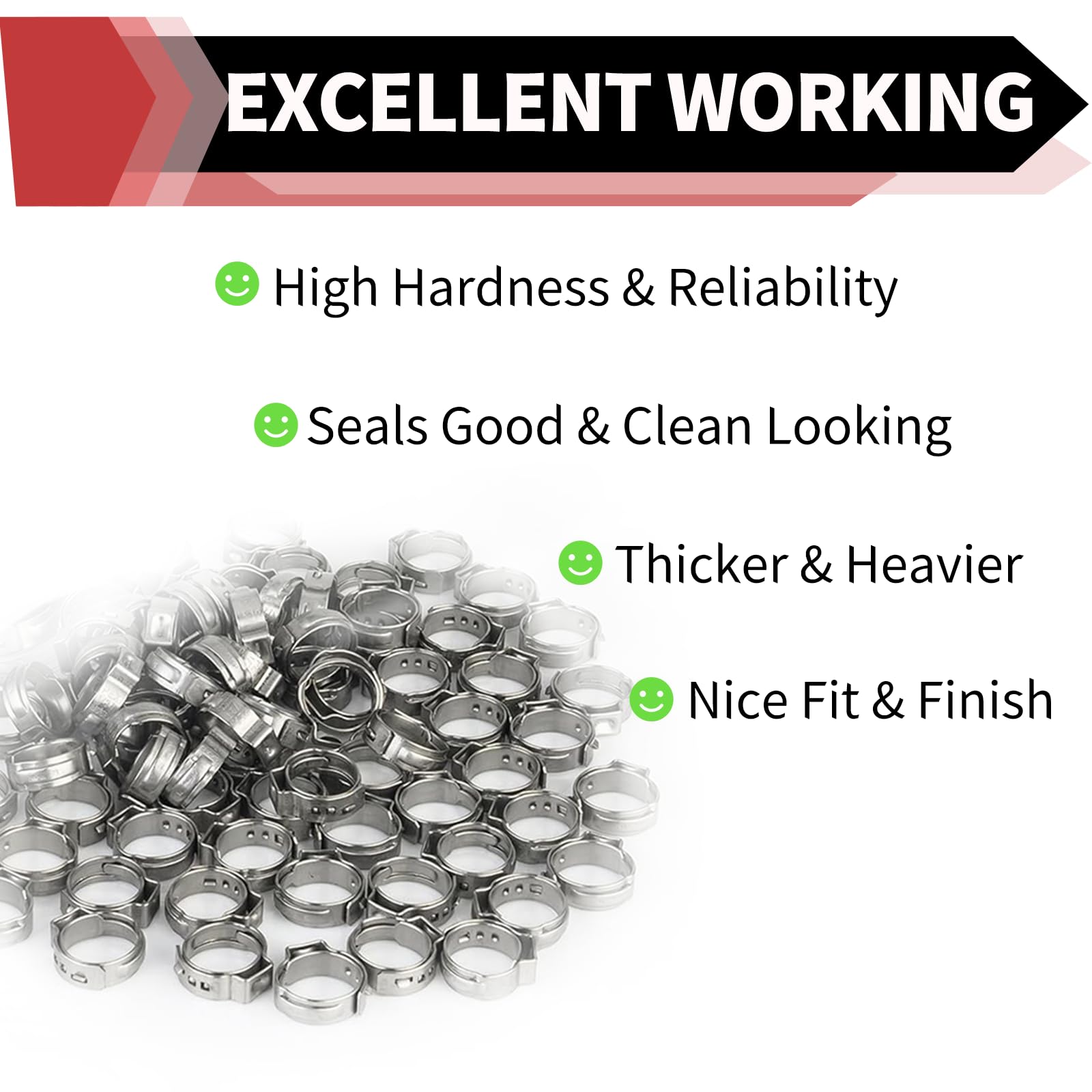 - Pack of 100 PCS 1/2 inch Pex clamps, Fit for 1/2 inch Pex Tubing Pipe.