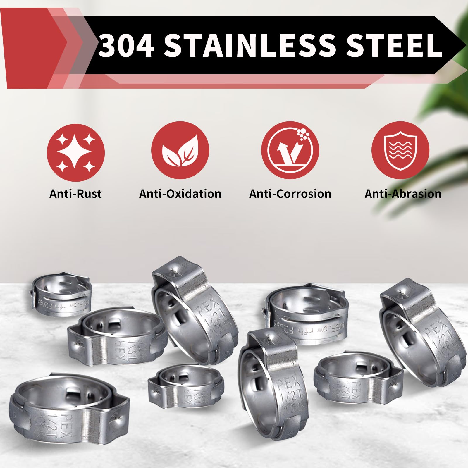 (Pack of 100) EFIELD 1/2-inch Stainless Steel Pex Cinch Clamp Rings for Pex Tubing Pipes,(CLAMP016)