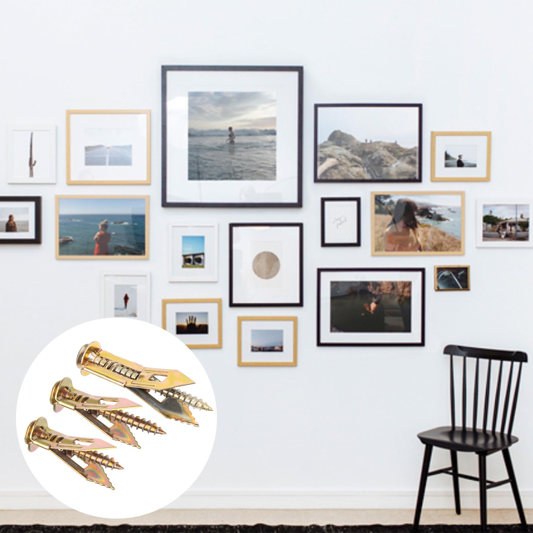 - Method Of Use: ①Knock the no drill anchors into the wall. ②Insert the screws into the Anchors. ③Tighten screws until secure