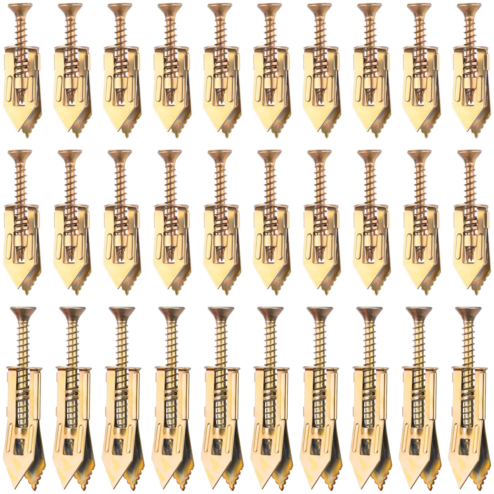 - Material: These anchors and screws are made of high-quality steel with zinc plated, strong and stable, not easy to be deformed or damaged. Featuring an expanding design with pronged anchors and tapered tips, the two sides expand relative to each other when the screw is tightened, the holding power is very stable, they can be used for a long time