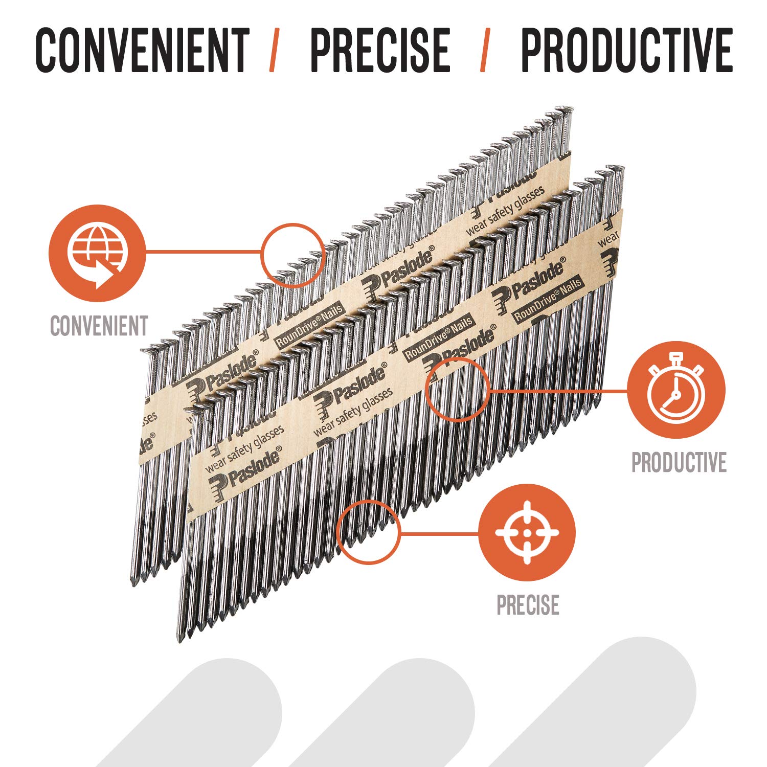 - Consistency - Special black-tipped coating consistently drives nails deeper into tough lumber, even LVLs