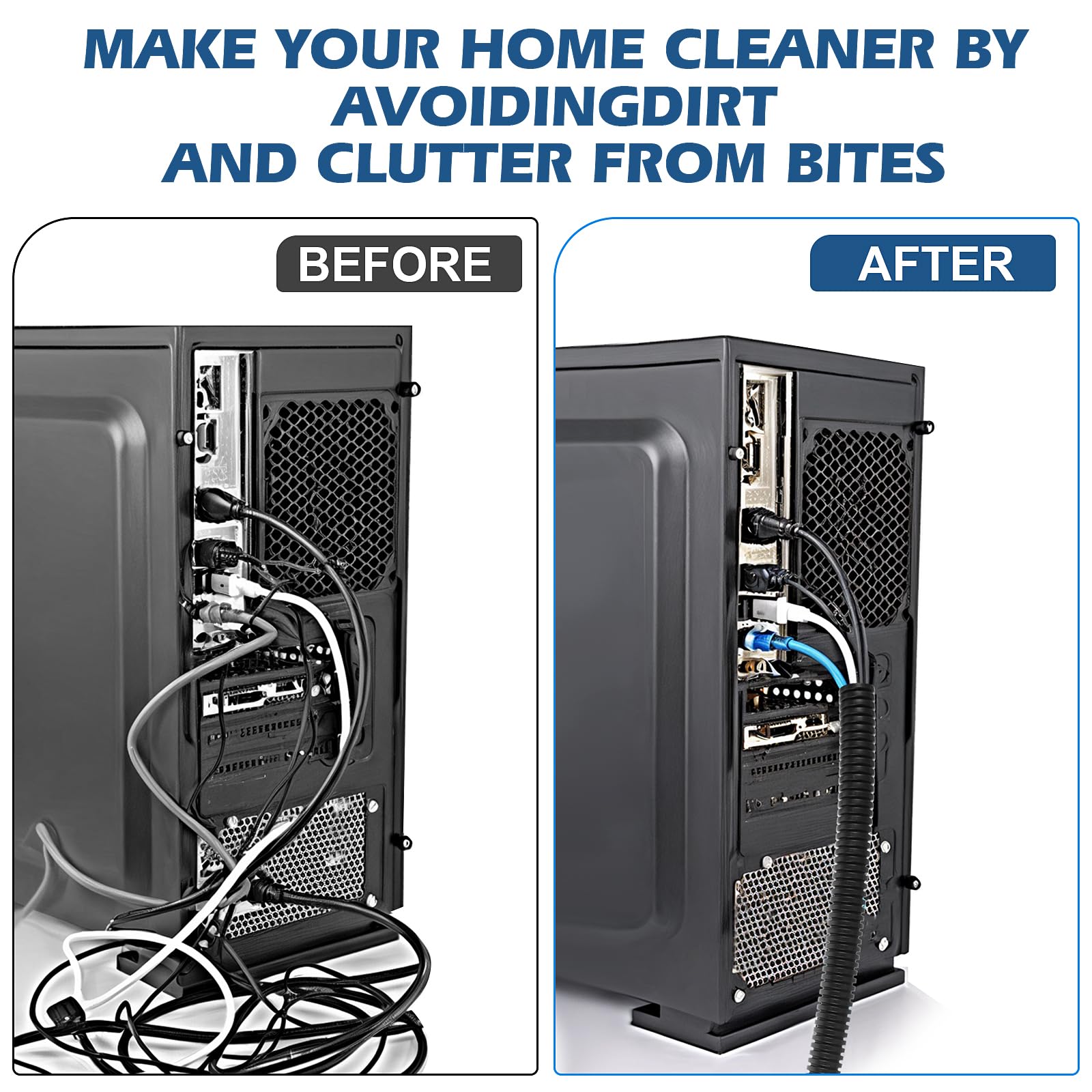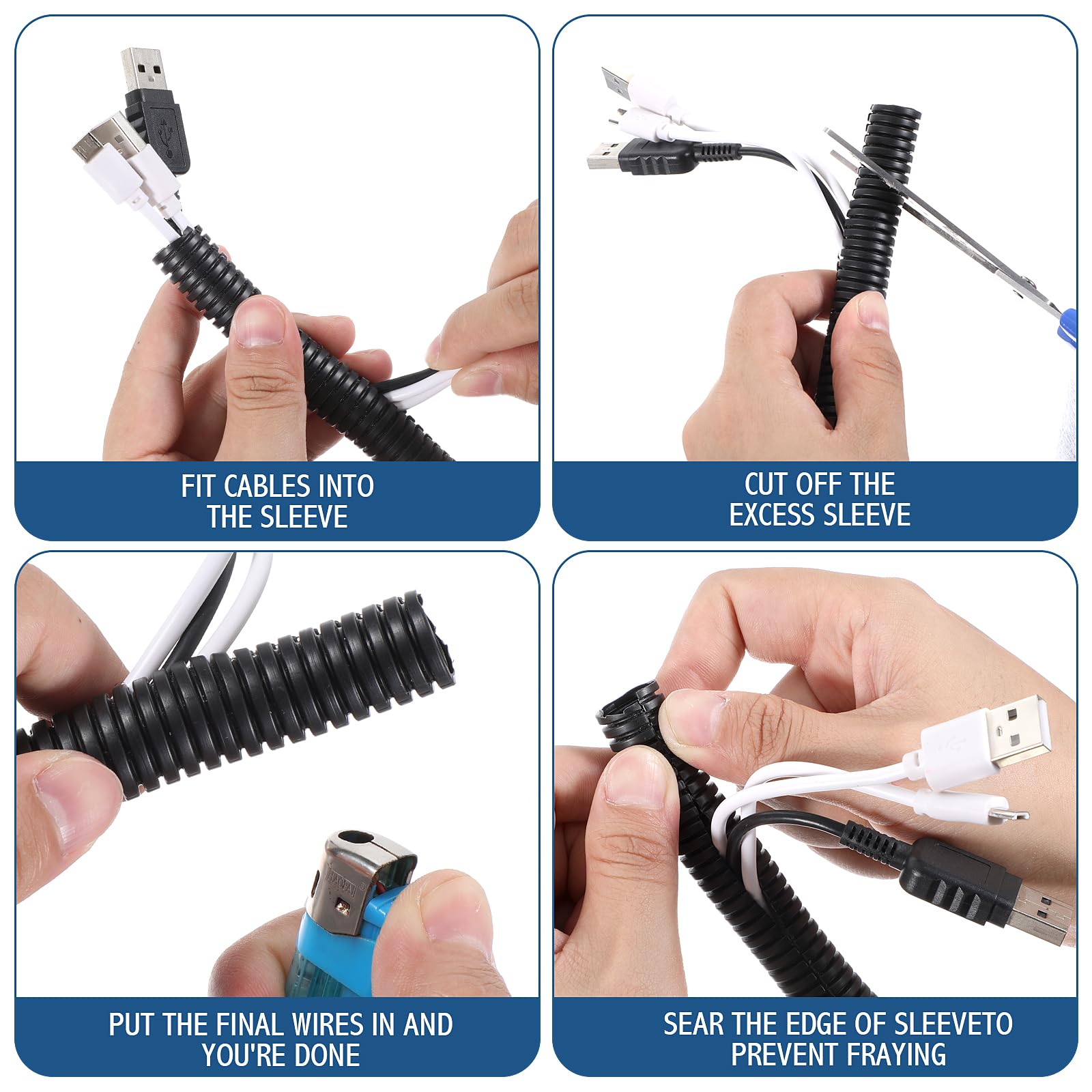- Easy to Install: With a split opening design, our cable protector is easy to insert or separate your cables, cut the length of the pipe to the size you want, then find the slit and put the wire in. Taking only a few minutes to have them managed and protected