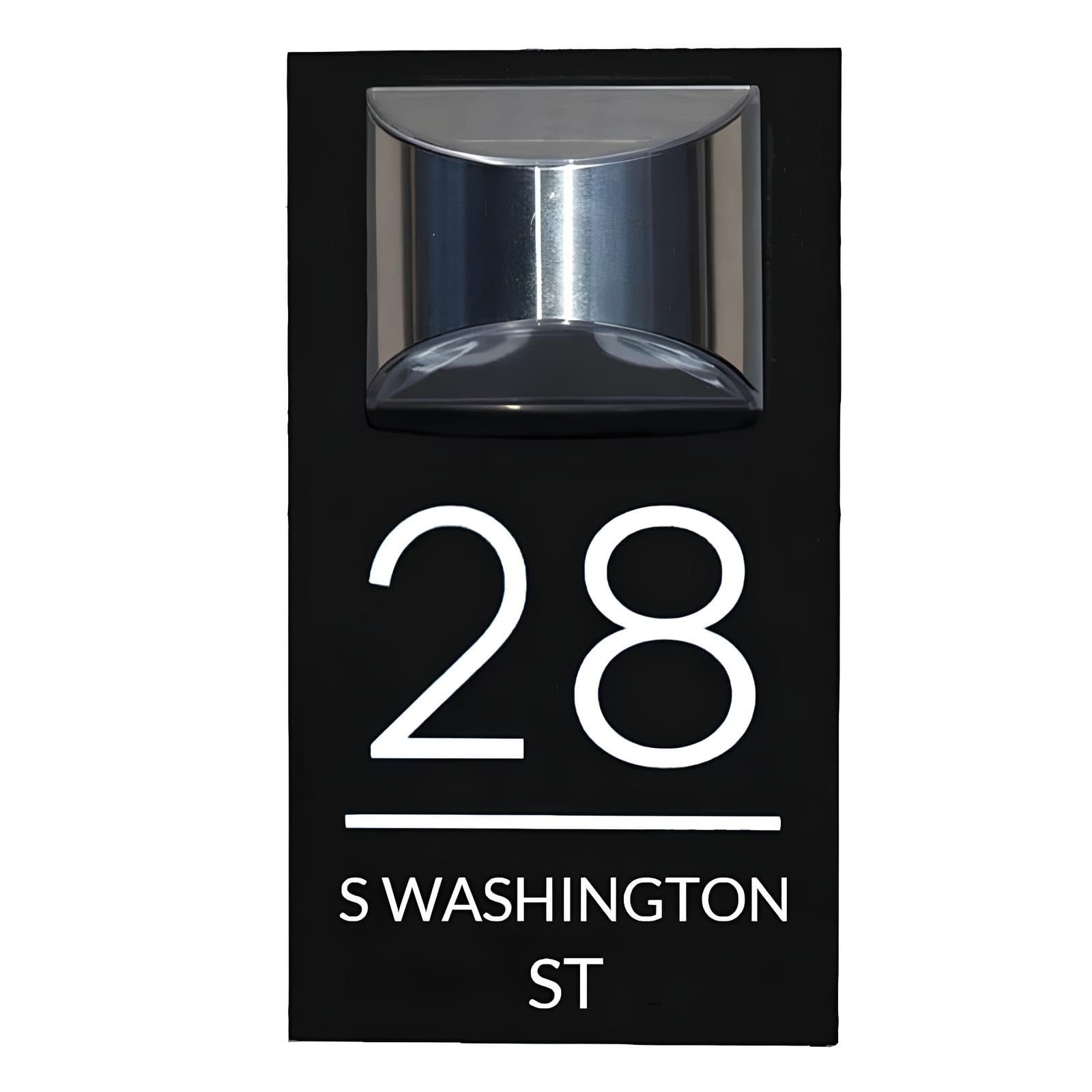- LED Solar House Numbers for Outside Light Up - Customise your surname, house number and street name or special message on an address plaque and make it your own. There are various styles, sizes, and background colors to choose from for illuminated address signs, and font colors can also be customized to match your unique style and home aesthetics.