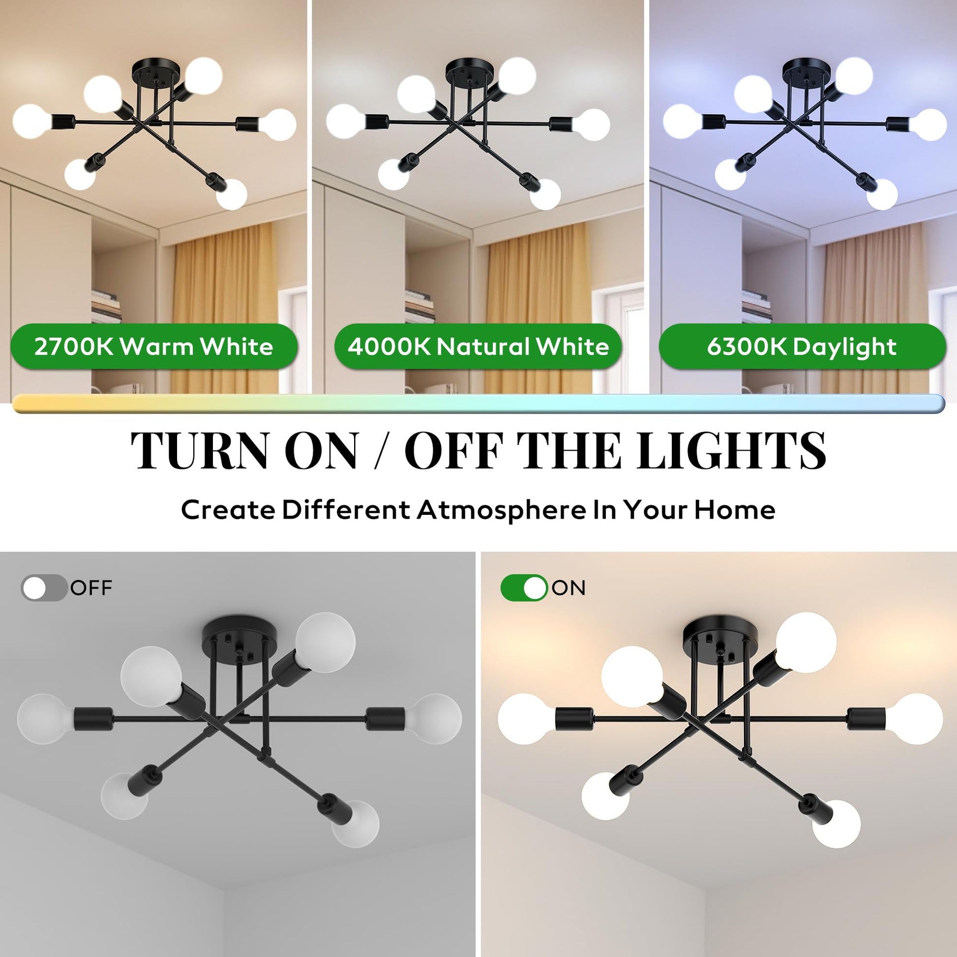 - 【Introducing Our Exclusive Modern Sputnik Chandelier】A stunning semi-flush ceiling light seamlessly combining satellite style with contemporary geometric shapes. This exquisite fixture strikes a perfect balance between modern and retro aesthetics, adding a cozy and sophisticated touch to your home decor. It is suitable for any place in your house, such as the entryway, bedroom, dining room, living room, corridors, hallways, basements, balconies, attics, bars, offices, farmhouses, children's rooms, etc.