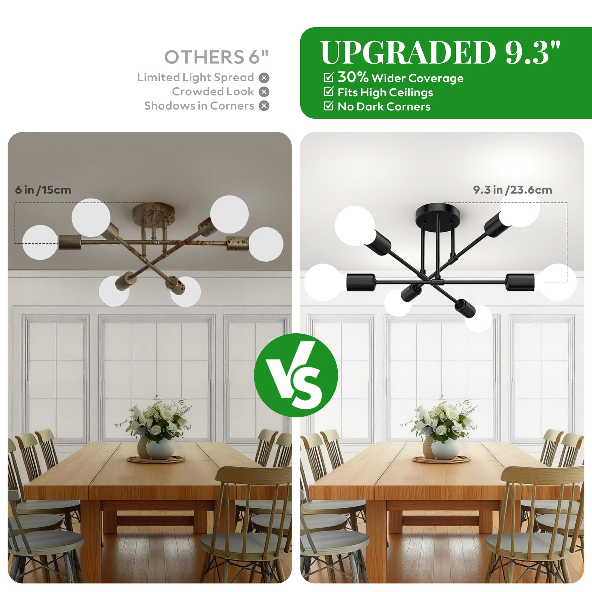 - 【Brighter Design, Adjustable Angle】 Elevate your space with the 6-light design of our ceiling light fixture. The open design floods your room with more light than traditional fixtures, eliminating dark corners. Adjust the angle as needed to illuminate every corner when reading, watching TV, playing games, or spending time with family and friends.