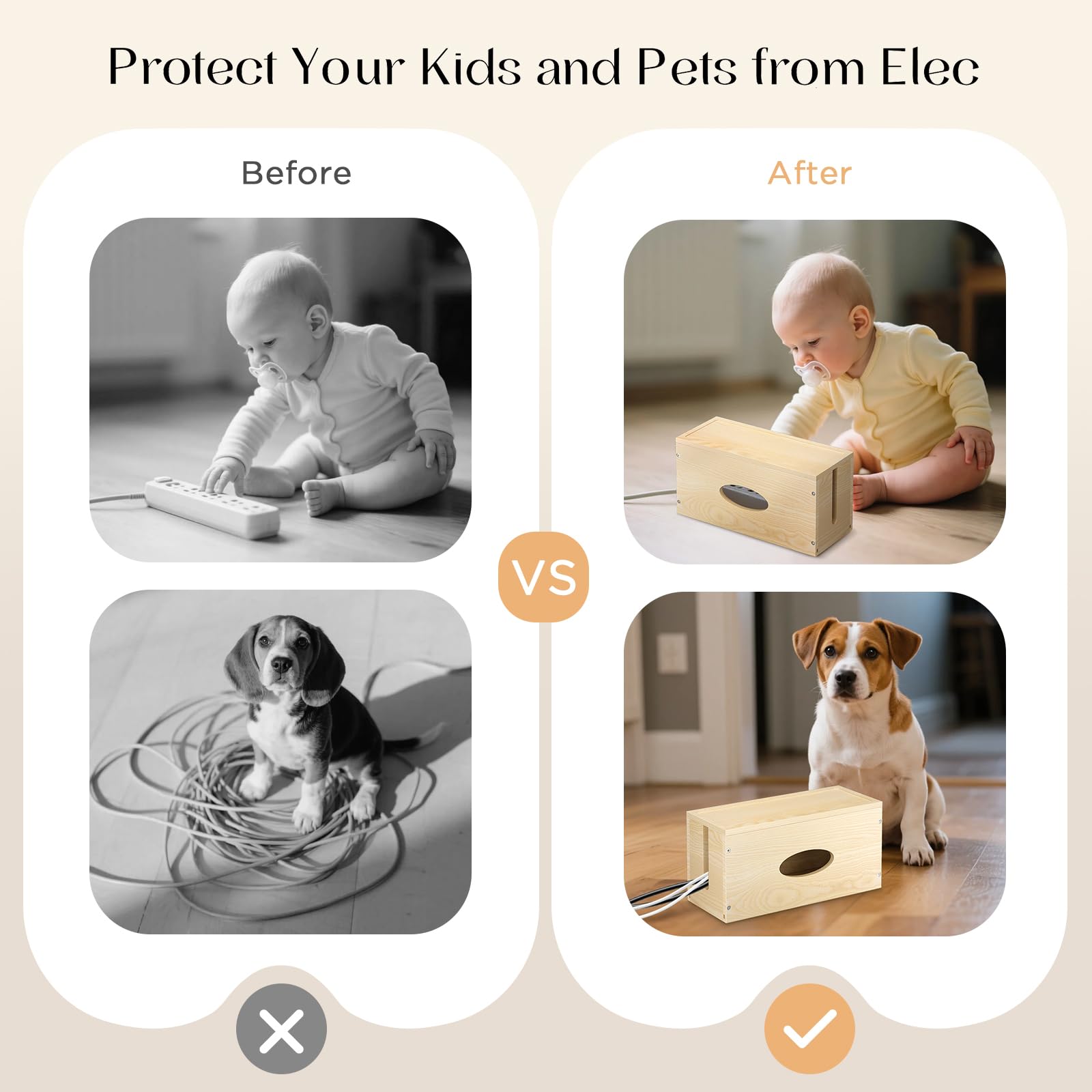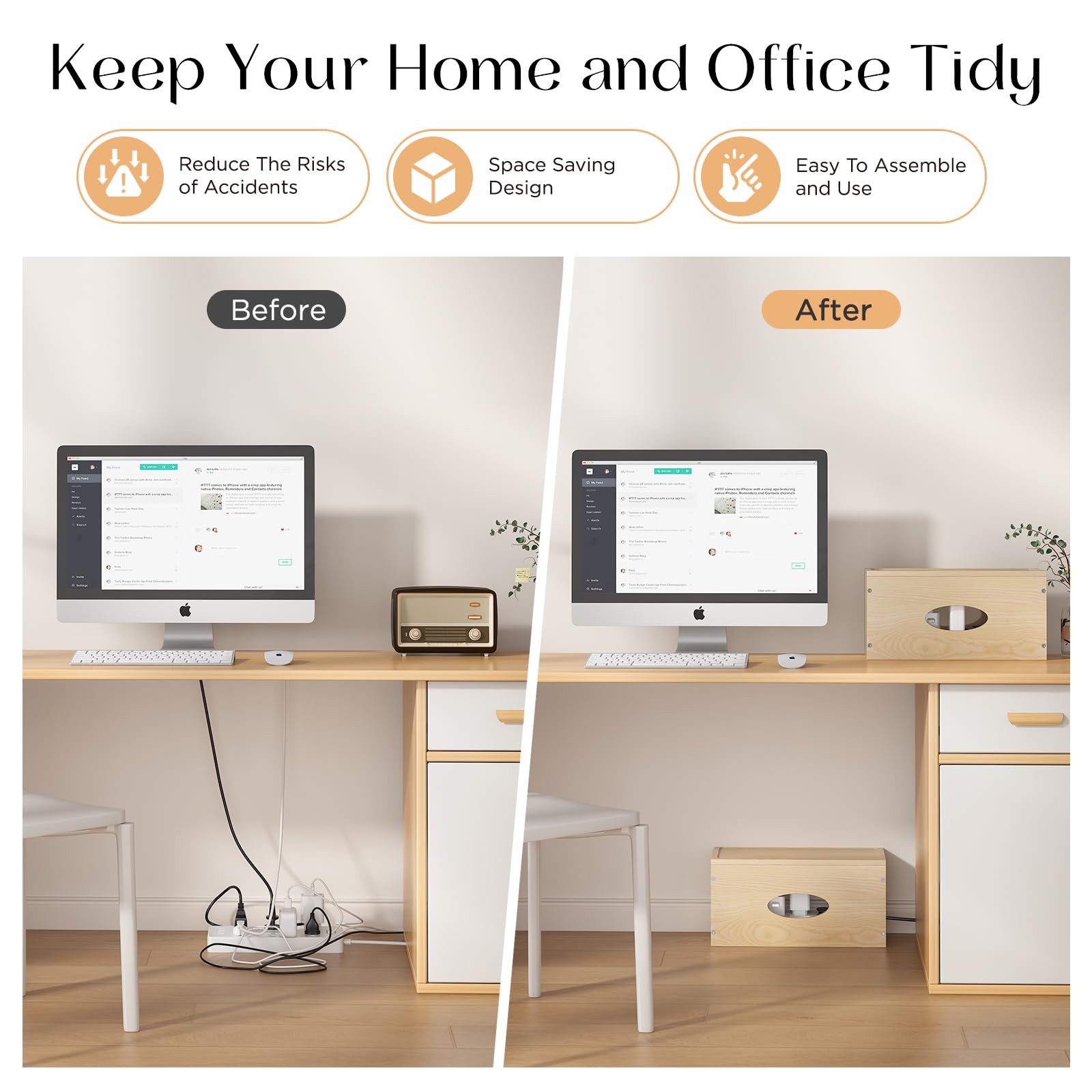 - WOODEN CABLE MANAGEMENT BOX: This wooden box is designed for manual assembly,Experience the satisfaction of building your own cable sanctuary! Made from solid pine wood with a smooth finish, this easy-to-assemble box withstands years of daily use