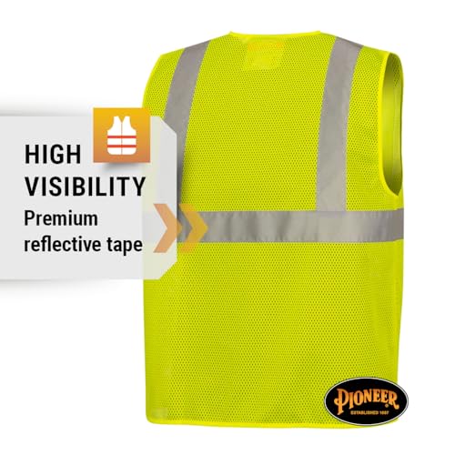 Pioneer Hi Vis Self-Extinguishing FR Safety Vest for Men & Women - Flame Resistant Mesh with Reflective Tape - Class 2