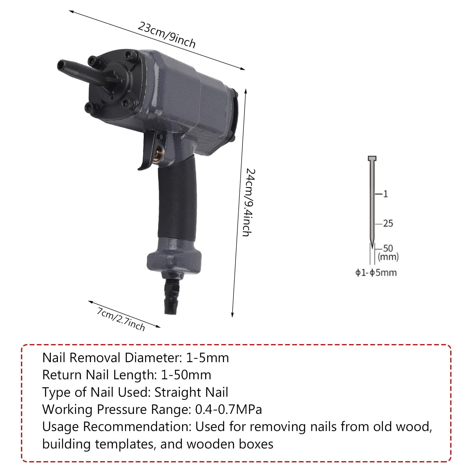 - 【Powerful & Efficient Nail Extraction】 Effortlessly remove stubborn nails, staples, and fasteners from wood, pallets, and demolition materials with our heavy-duty pneumatic nail remover. Its powerful air-driven mechanism delivers strong pulling force and quick cycle times, saving significant time and labor compared to manual tools.