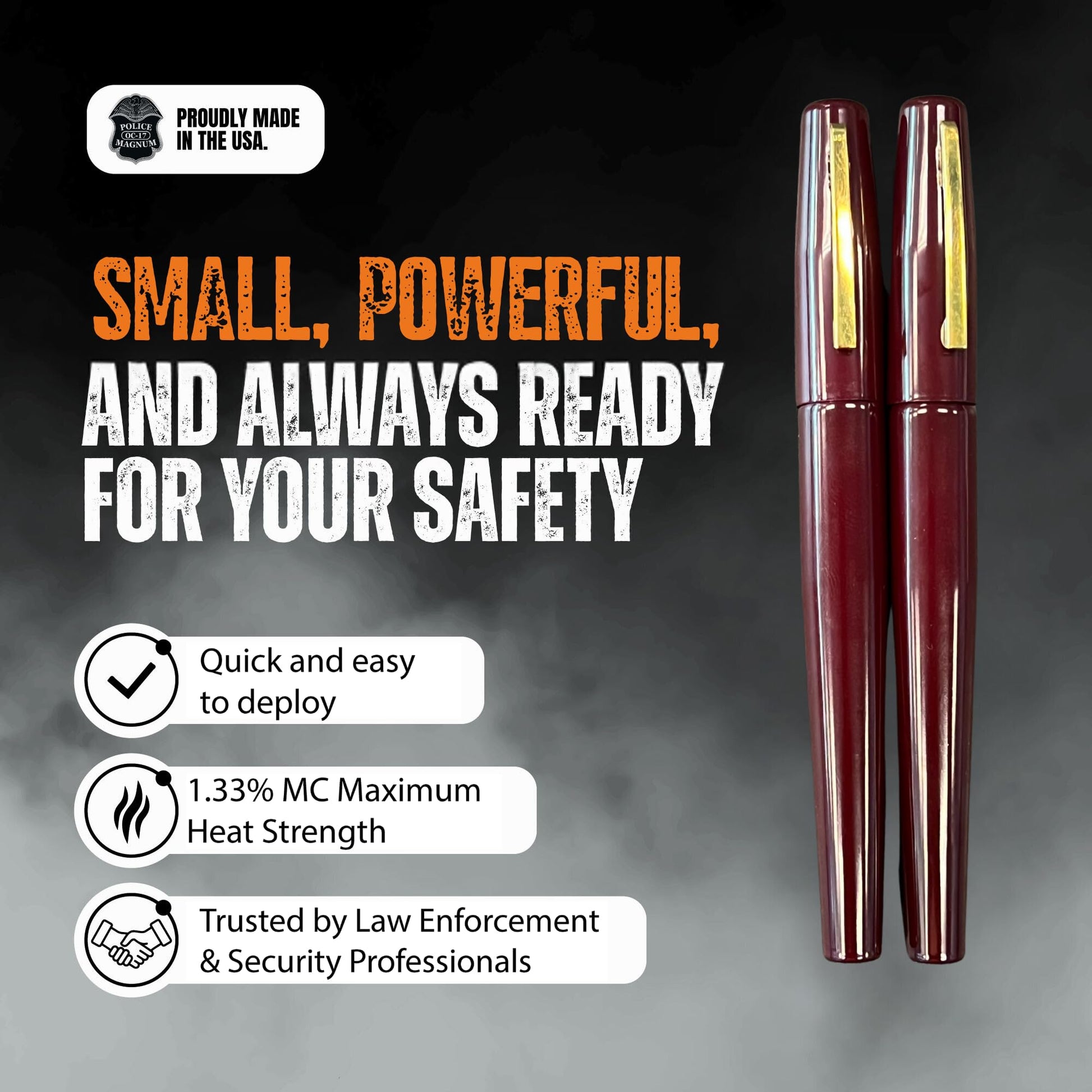 Police Magnum Small Pepper Spray Pen self Defense kit- Discreet Pocket Size Security- Made in The USA- 2 Pack Burgundy Tactical Pens