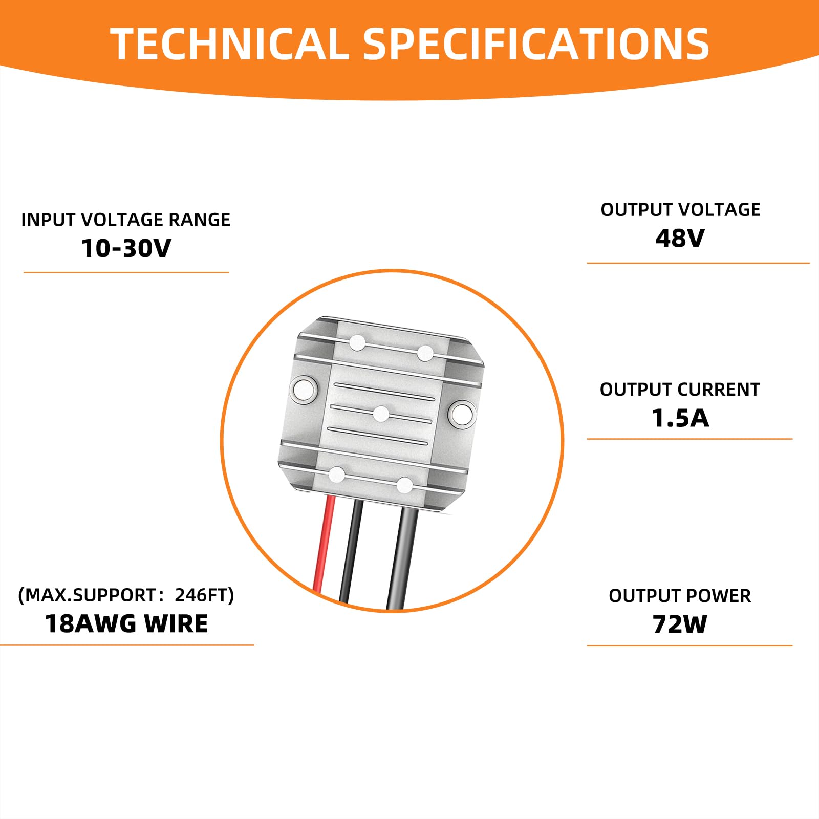 - Specially designed for Starlink Mini, input voltage of 10-30V, output voltage of 48V, and maximum output current of 1.5A. This 12V DC boost power adapter is perfect for powering Starlink Mini