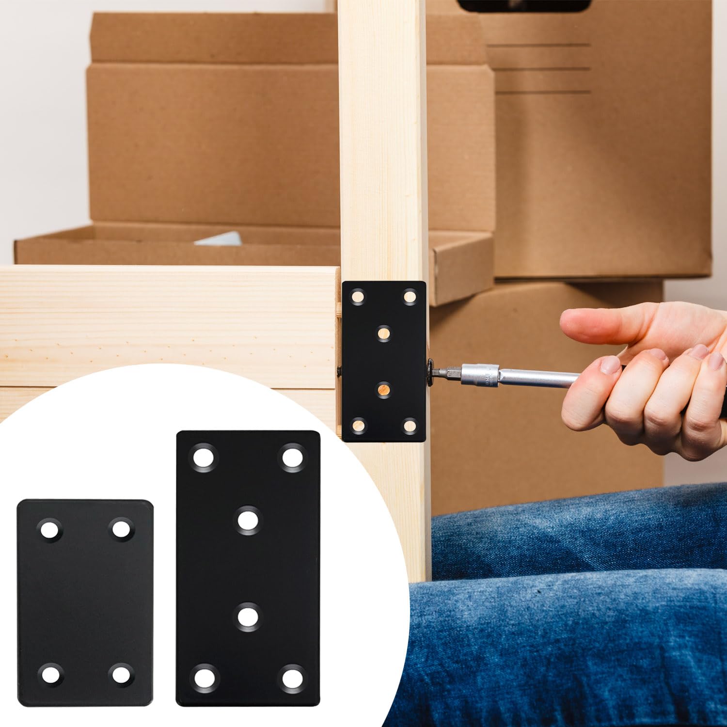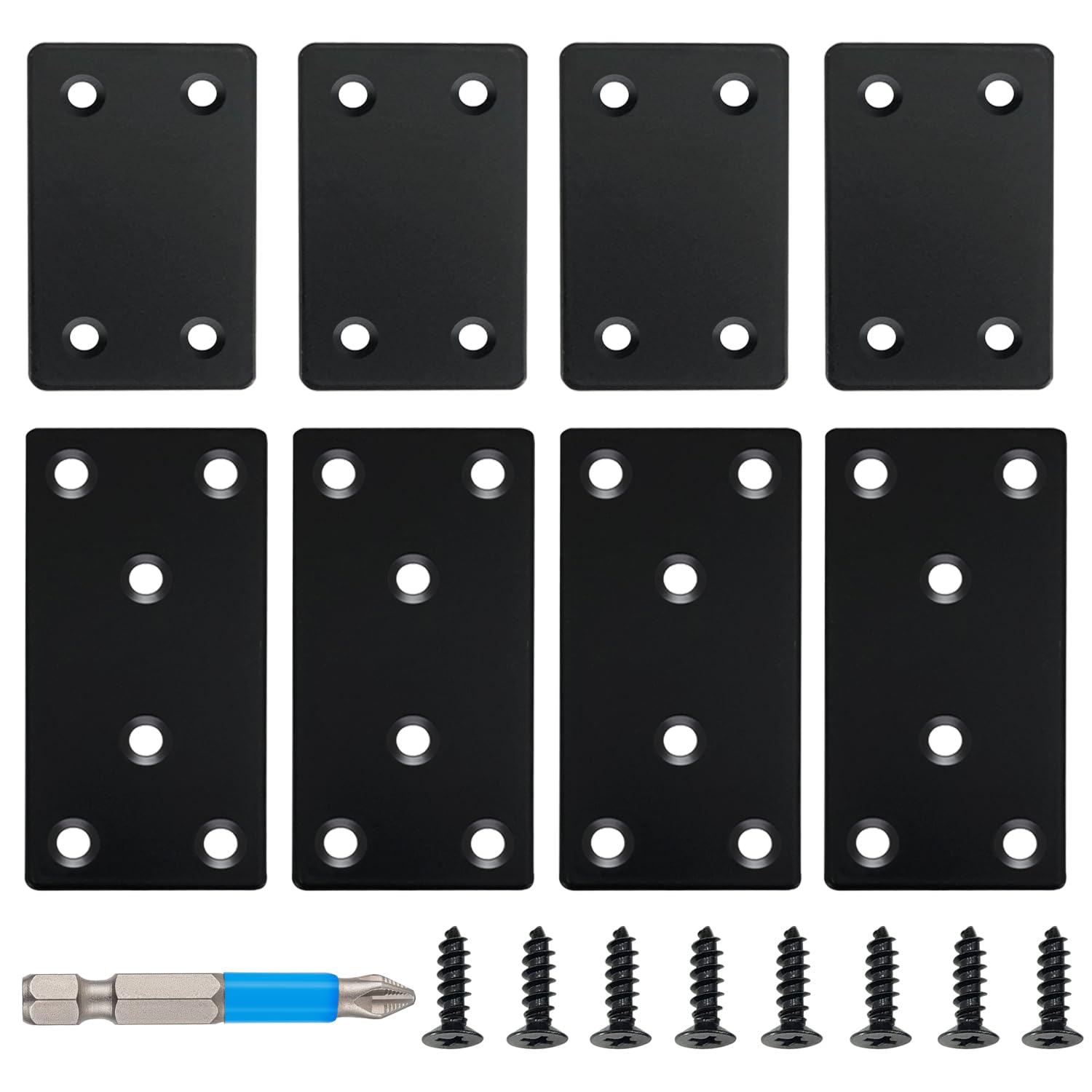QSJ 8 Pack Black Flat Mending Plate 3.15x1.57‘’ & 2.36x1.49'', Stainless Steel Bracket, Straight Metal Brace Bracket, Fixing Joining Plate for Wood Furniture Fastening & Fixing
