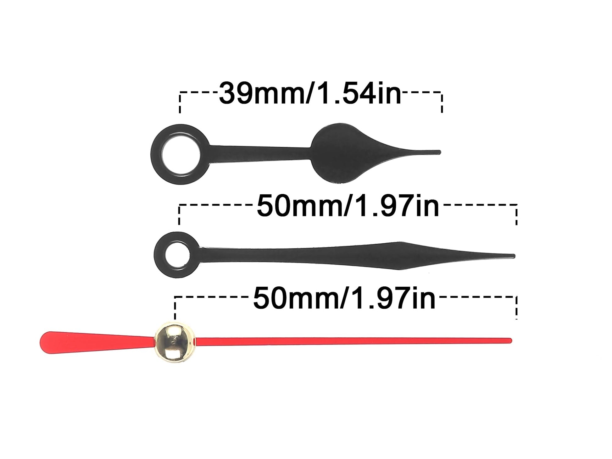 - Complete Clock Parts: include everything you need: 1 high-quality clock mechanism ,1 black ×39mm hour hand,1 black×50mm minute hand, 1 red× 50mm second hand, and all necessary mounting accessories.(not include hanger bracket)