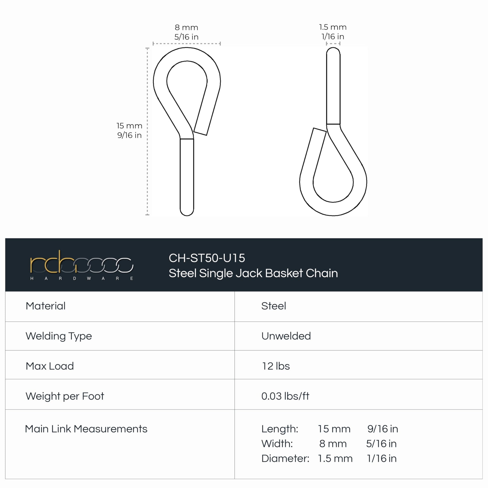 RCH Hardware CH-S50-16-BLK-3 | 14 Gauge Decorative Solid Steel Single Jack Fixture Chain | 3 Foot Increments | Black Finish