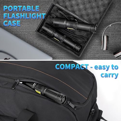 - WATERPROOF & ALUMINUM ALLOY MATERIAL: The flashlight is waterproof and can be used normally even in heavy rain outdoors. The shell is made of high-strength aluminum alloy material with a non-slip handle, exquisite and durable.