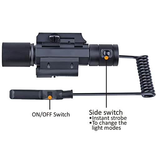 Red Laser Sight Combo, 800 Lumens Tactical Long Gun Flashlight 4 Modes Rail Mounted with Remote Pressure Switch
