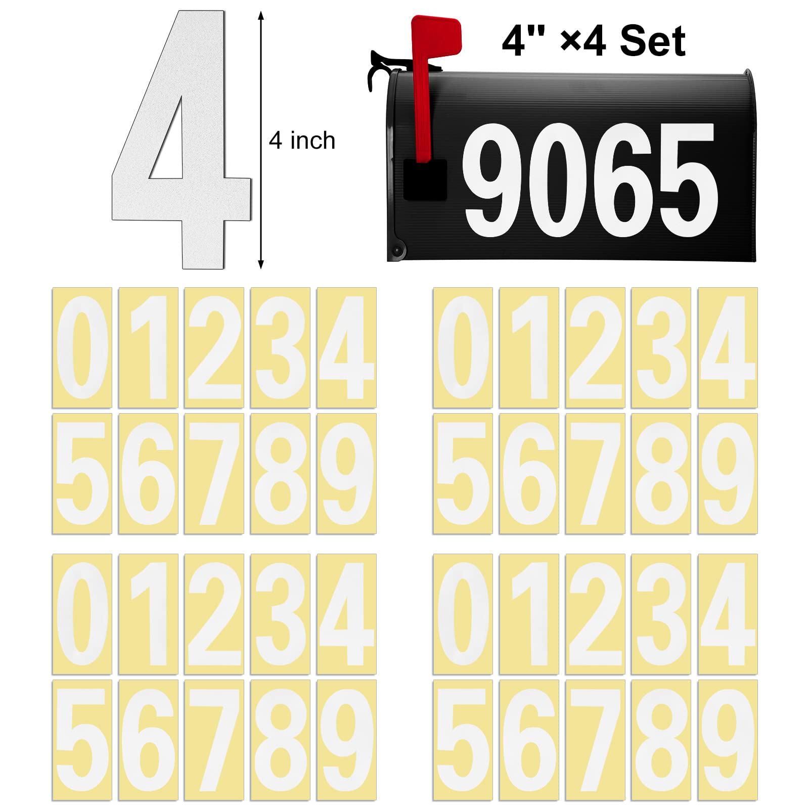 - FOUR FOR EACH NUMBER: This package contains 4 sets of 4 inch reflective mailbox numbers. Every set comes with 10 numbers (number 0-9), 40 pcs number stickers in total. If you have a double number in your address you will have enough numbers for both sides of the mailbox.