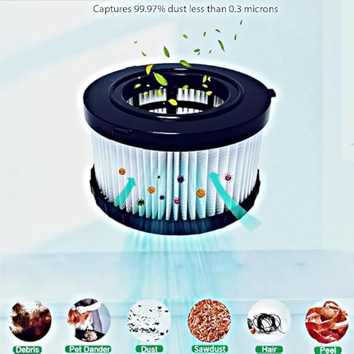 - High-Efficiency HEPA Filtration:Designed with pleated HEPA material, this filter captures up to 99.97% of particles as small as 0.3 microns, making it ideal for cleaning wood chips, drywall dust, and other debris