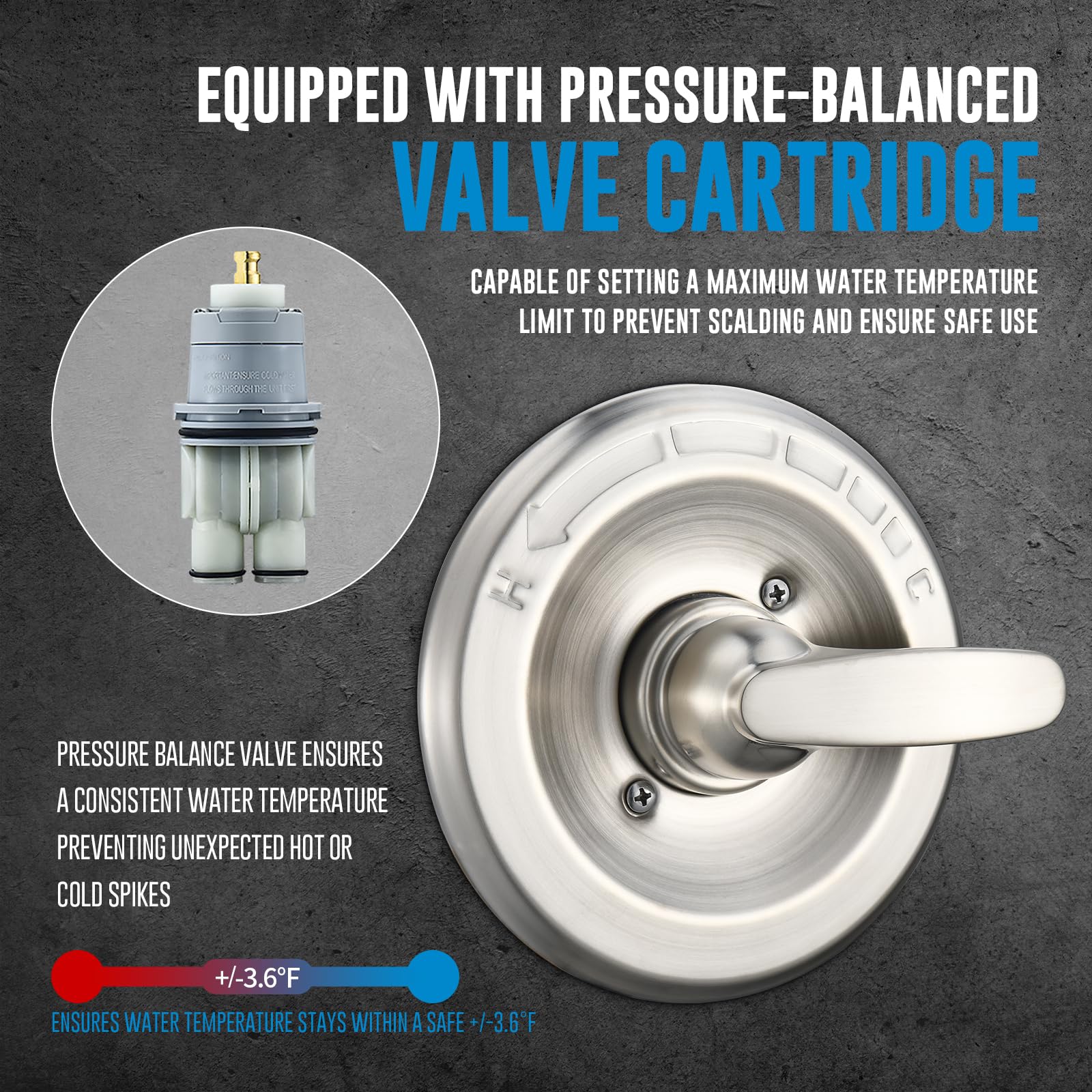 - Temperature Limit: Our pressure balanced valve cartridge maintains stable temperatures, preventing scald