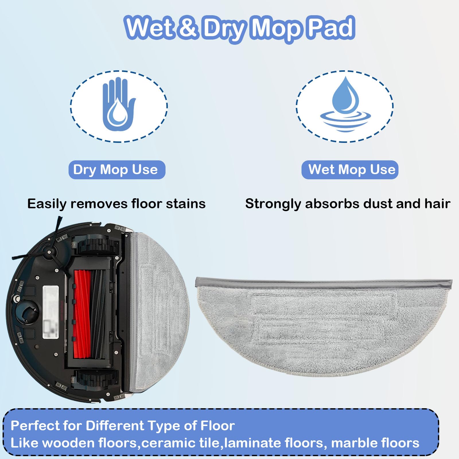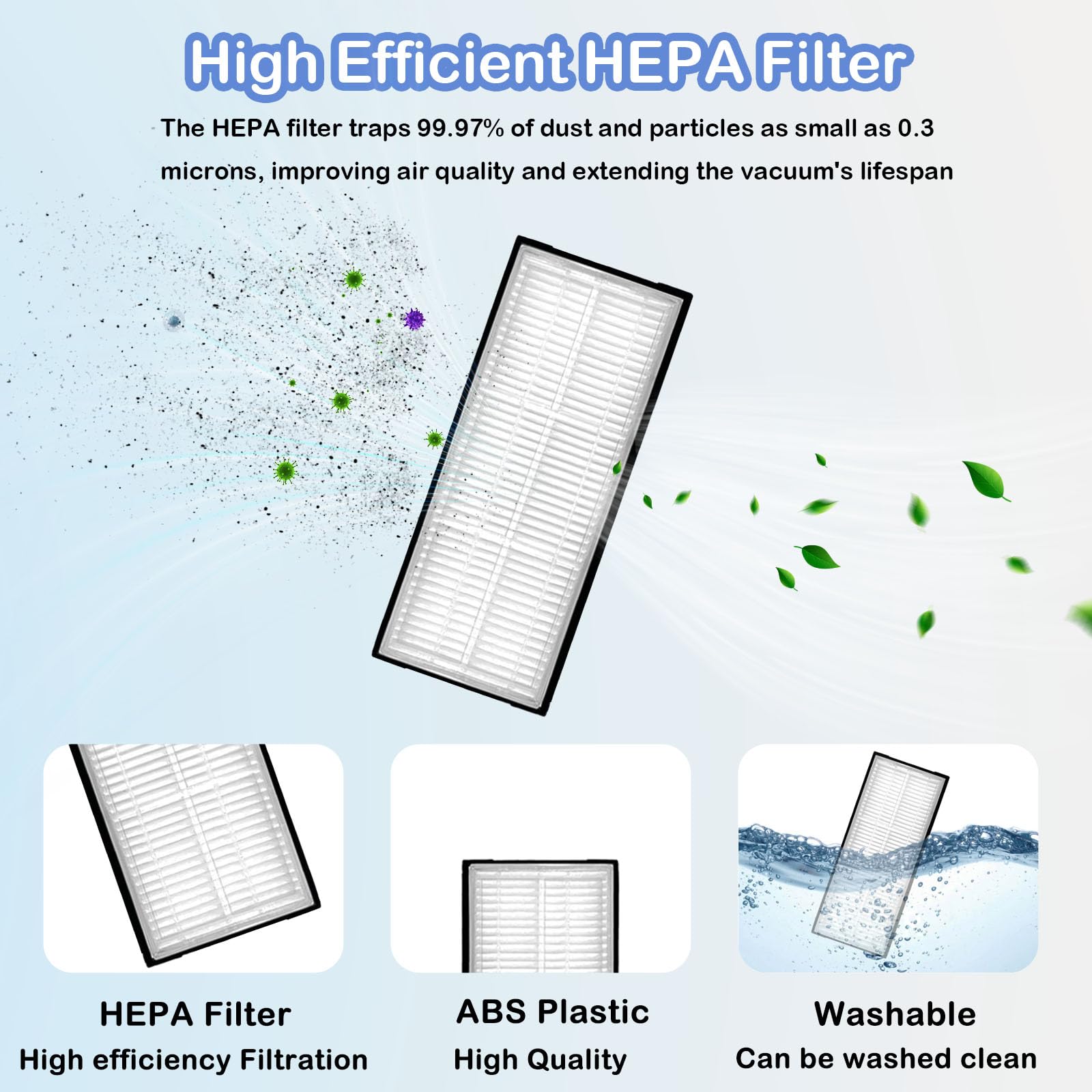 - Complete Value Kit – Get everything you need in one box: 2 main brushes, 1 rolling brush, 4 HEPA filters, 4 side brushes, 4 washable mop pads, and 6 dust bags – perfect for routine upkeep and replacements