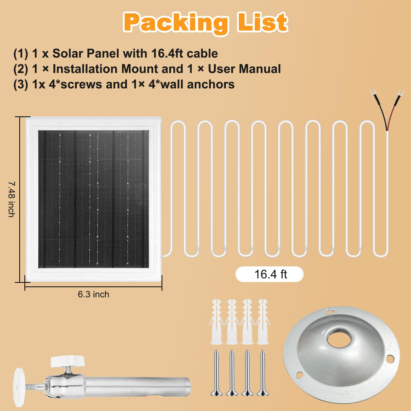 - Extended Cable Design - The cable length of the solar panel is abou 16.4ft, allowing you to flexibly choose the placement position of its solar panel.