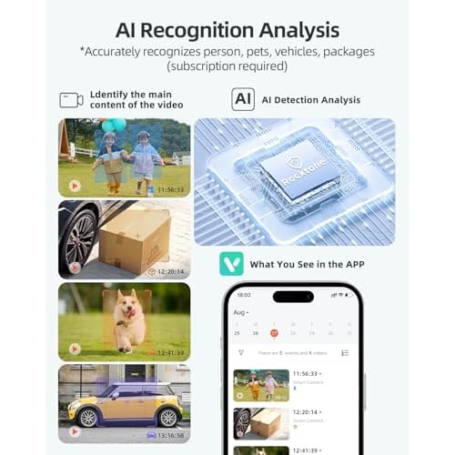 - PIR Motion Detection & AI Analysis Recognition - Rocktone wireless security cameras feature advanced PIR motion detection technology, which triggers instant alerts to your phone via the "Vicohome" app when motion is detected. With its cutting-edge AI analysis, the system can accurately distinguish between people, vehicles, pets, and packages, recognition accuracy rate is as high as 95%