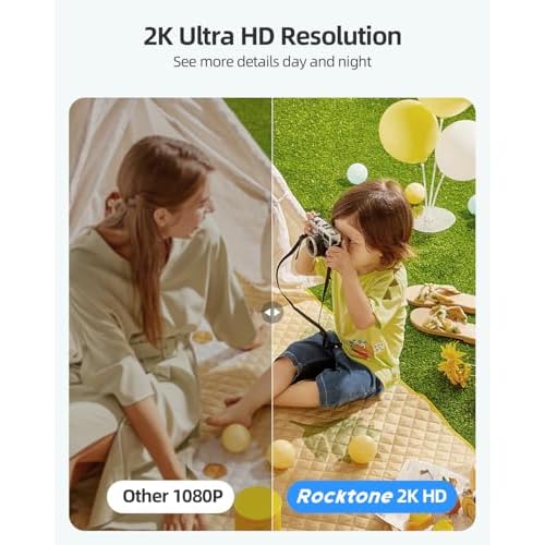 Rocktone Solar Security Cameras Wireless Outdoor, 2K Battery Powered WiFi Cameras for Home Security with AI Motion Detection, Color Night Vision, 2-Way Talk, Siren Alarm, IP66, Cloud/SD Storage