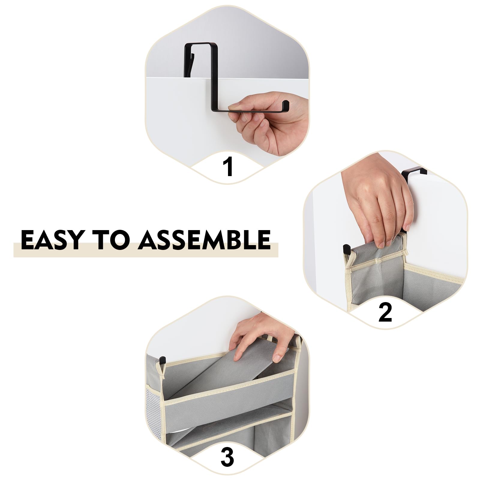 - 【EASY TO HANG】We'r affirmative that the size and the shape of this back door hanging storage are exactly what your family needs, 2 large exclusive steel hooks are adjustable better for your standard home size doors, It hangs supports the front bins decent not to sag or tilt forward.