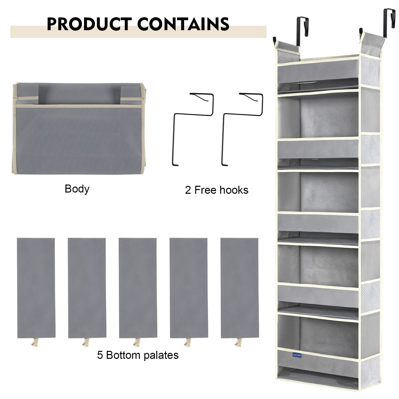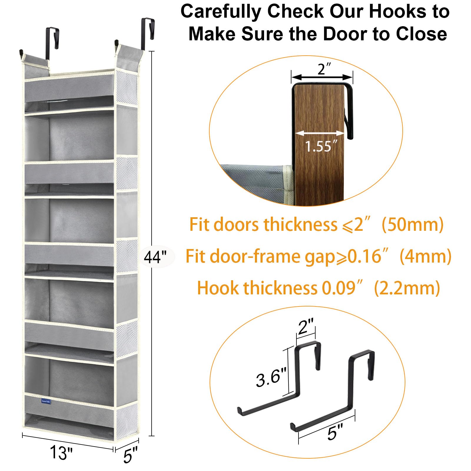 - 【STURDY AND DURABLE】The closet door organizers are sophisticated stitchings all around the bottoms, throughout ended up with topmost slots where steel hinges firmly enclasped on the back of door storage organizer, and likely stay flush with the door.