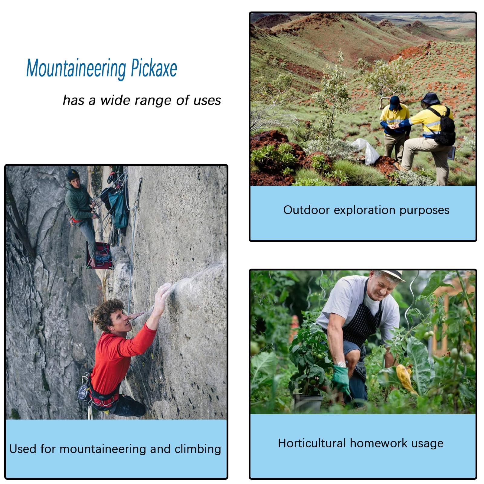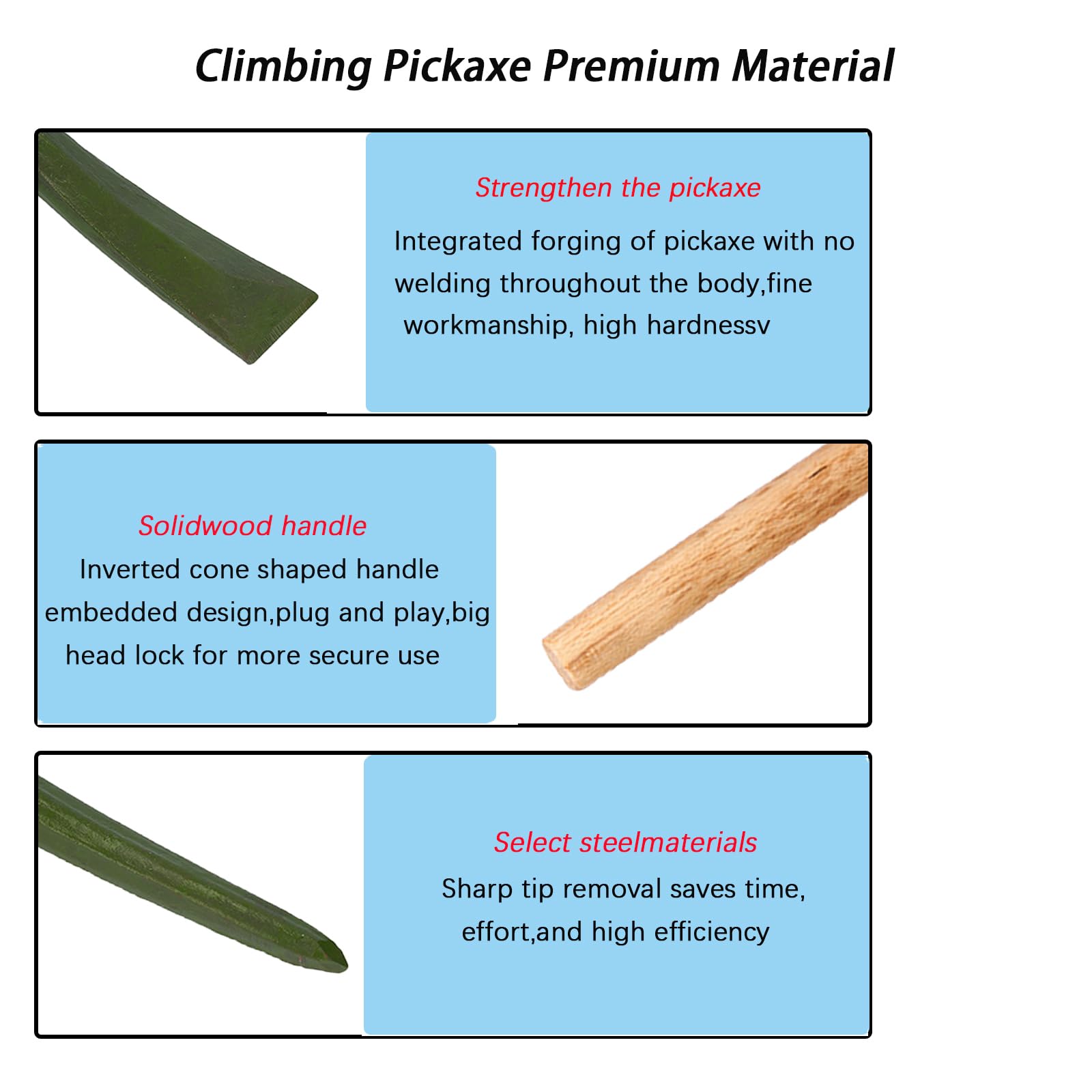 - Premium Material:Climbing pickaxe adopt one-piece molding Forged Heat Treated cast iron,sharp,sturdy and durable,high strength, durability and comfort for long-term use.