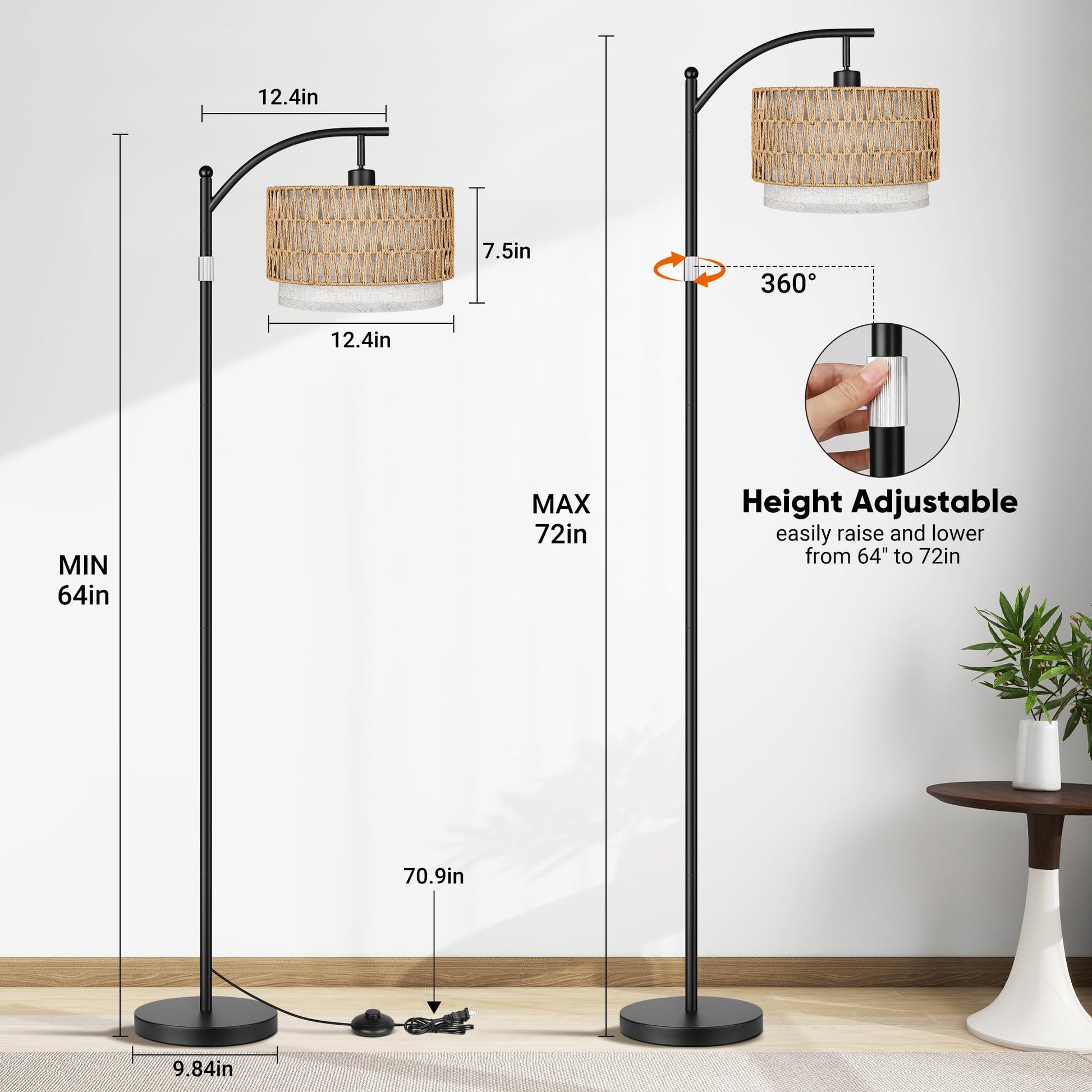 - Rattan & Fabric Double Lampshades:The black floor lamp comes with removable hand-woven rattan and fabric double lampshades, which can be freely displayed according to your preference. Innovative design offers diverse options for every home designer, this adjustable floor lamp ffits seamlessly into any decor and is suitable for such style as contemporary, vintage, mid-century, traditional, farmhouse and so the like