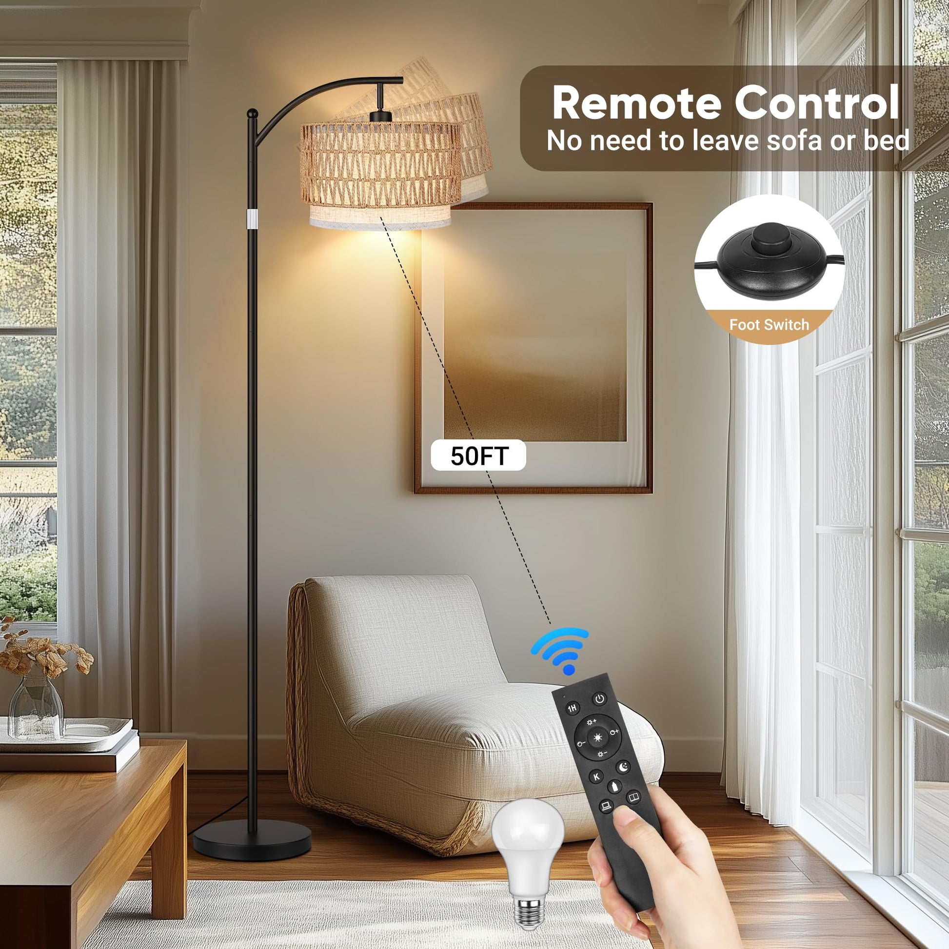 - Dual Control via Remote Control or Foot Switch: the combination of traditional foot switch and smart remote control makes the floor lamps more convenient .The control range of the remote can reach 65ft, allowing you to adjust the rustic floor lamp without any hassle.Rattan tall lamp ideal for installation in any room of your home, and this bohemian floor lights will satisfy all your needs for interior lighting and furniture ambience