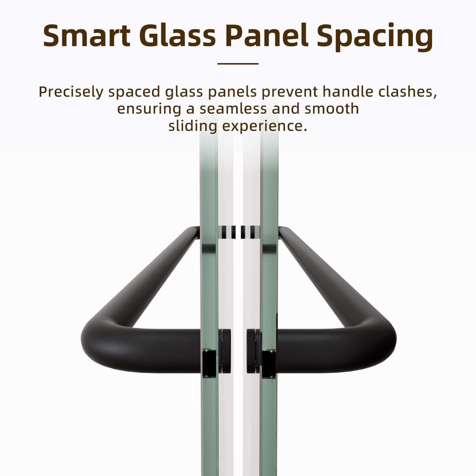 - DOUBLE SLIDING SHOWER DOOR with 2 TOWEL BARS - This design includes two sliding glass panels that move freely, allowing for a tailored shower experience. A stationary panel comes equipped with 2 towel bar, strategically placed for easy access and to help maintain an organized shower space.Smartly spaced glass panels prevent handle clashes for seamless operation.