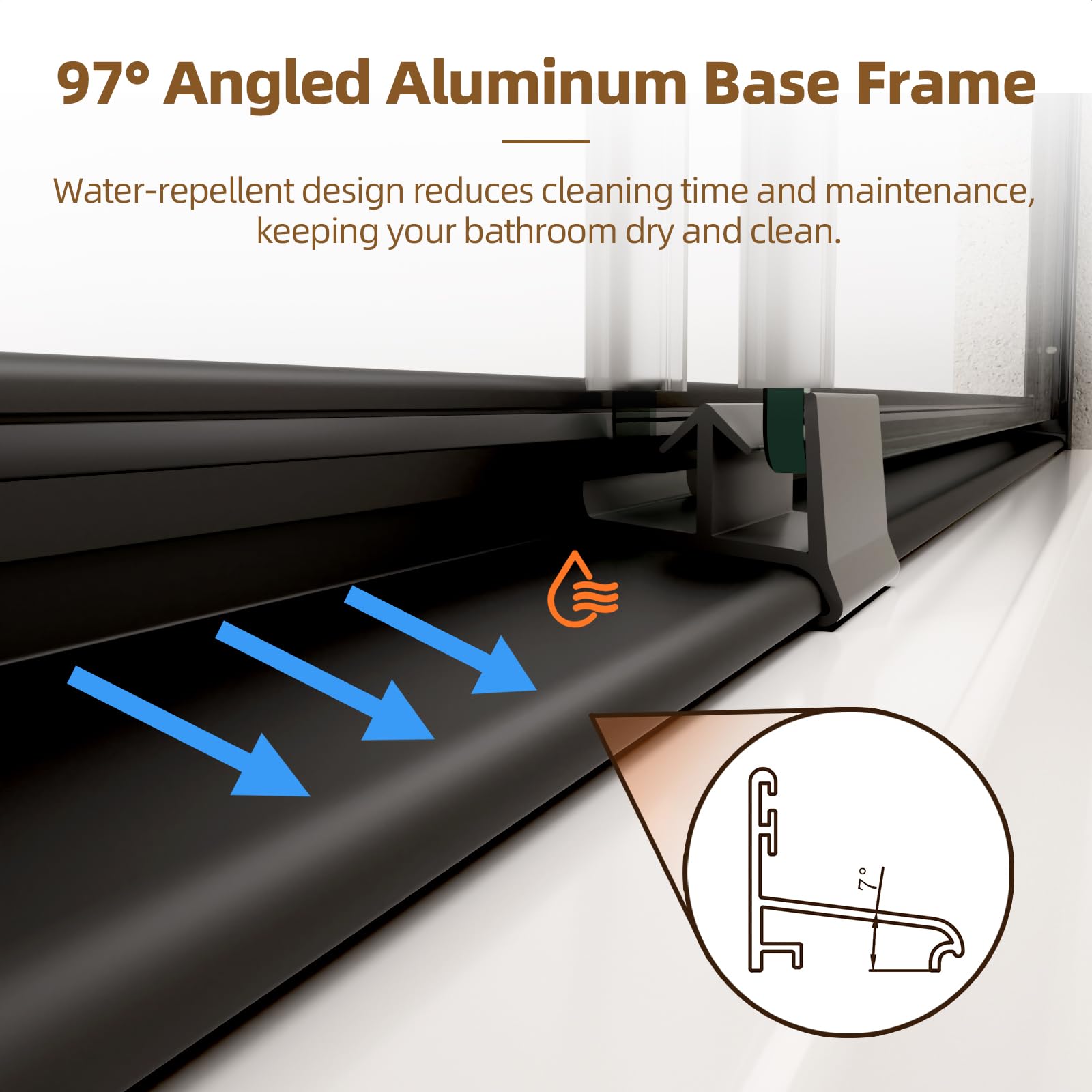 - ADJUSTABLE INSTALLATION WIDTH AND FLEXIBLE DESIGN - The shower door supports an installation width ranging from 56 to 60 inches, with the flexibility to adjust up to 4 inches to ensure a perfect fit. It features a walk-in width between 24 1/8" and 28 1/8".. Additionally, the reversible door design permits either left or right sliding, accommodating personal preferences and bathroom layouts.