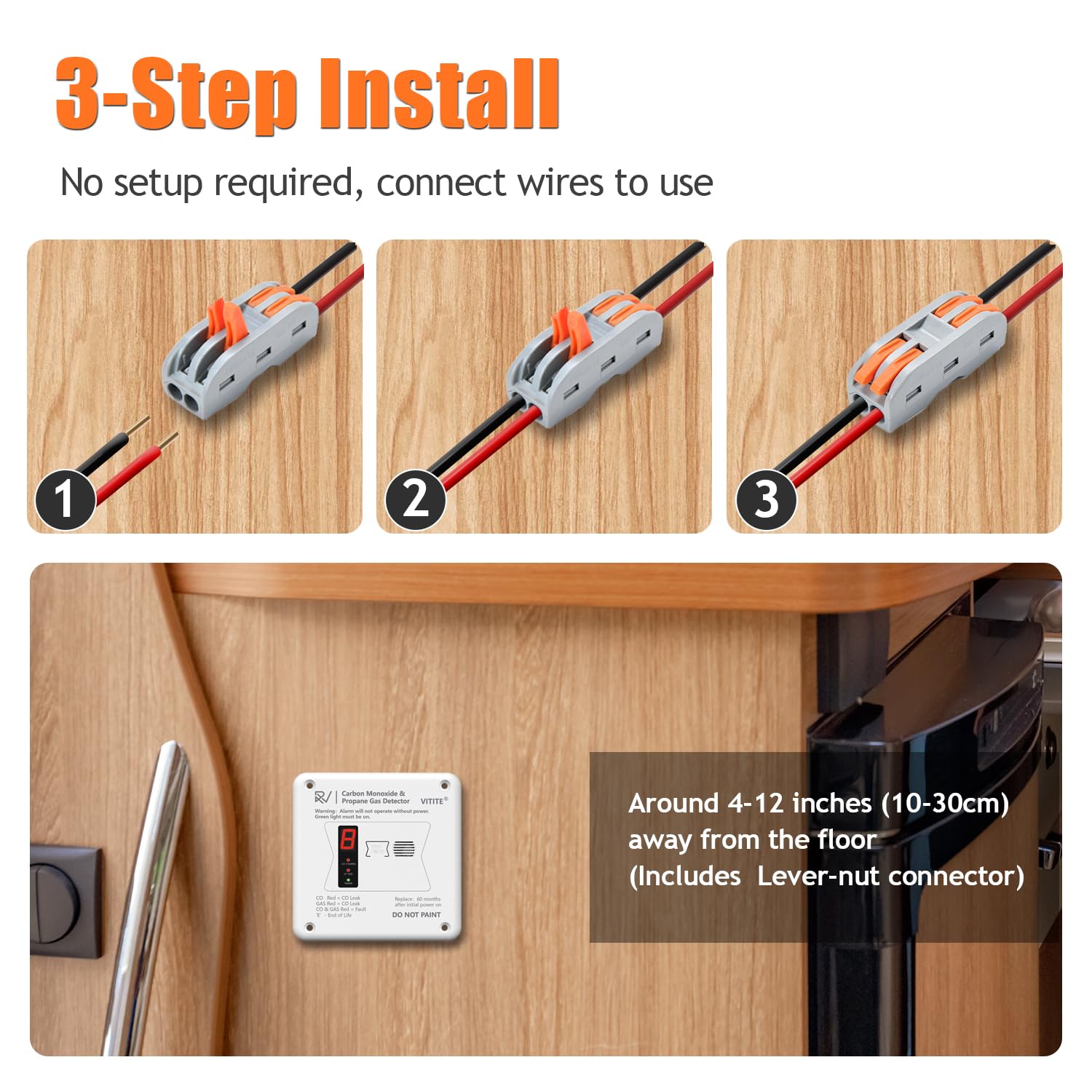 - What You Get: An RV carbon monoxide & propane gas detector, a lever nut connector, four screws, a user manual, and lifetime support from gas experts