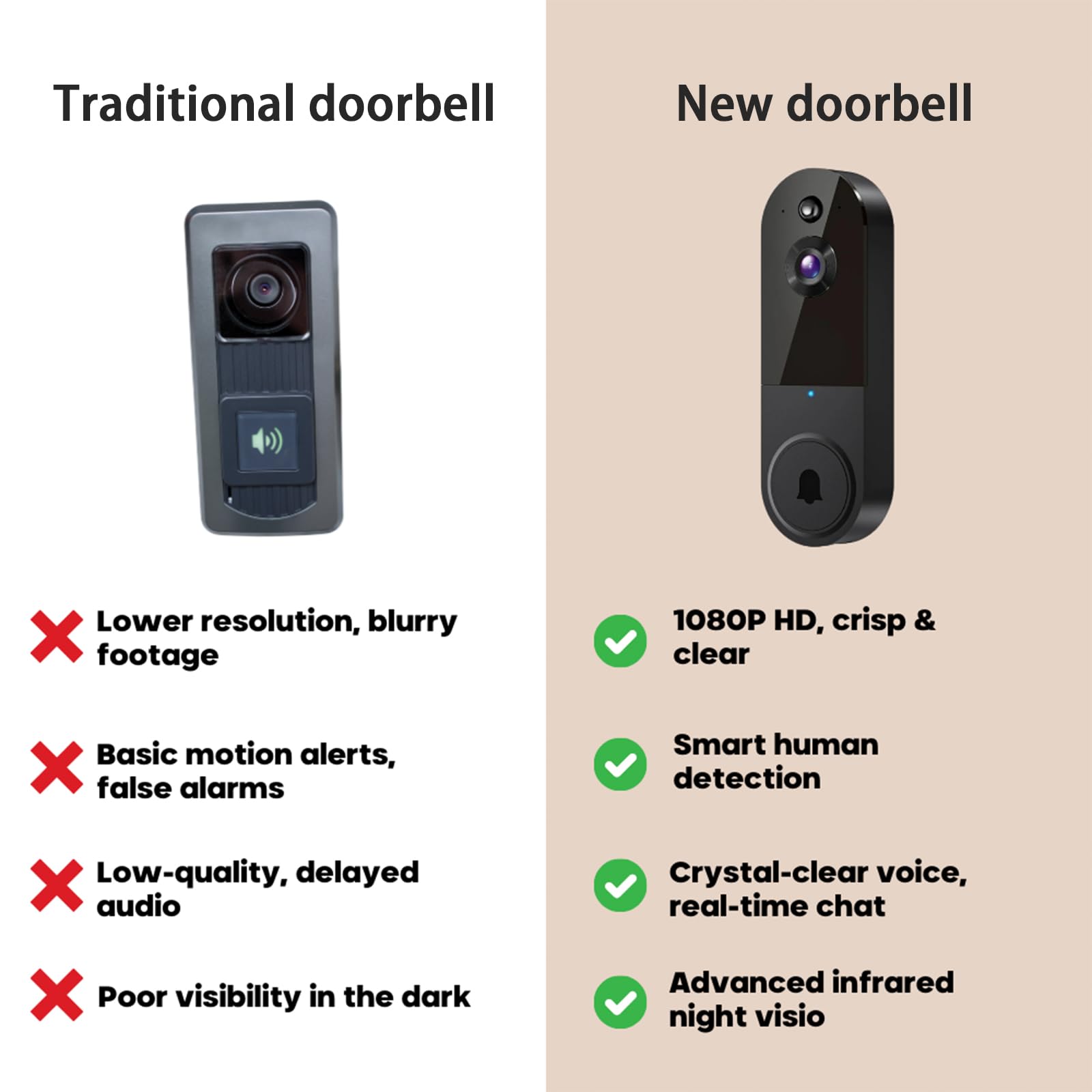 Safe Door Bell with Camera No Subscription, Safe Doorbell-The Smarter Way to Protect Your Home, Ai Human Detection, Live View, 2-Way Audio Included Chime, Monitor Indoors and Outdoors(T1/Black)