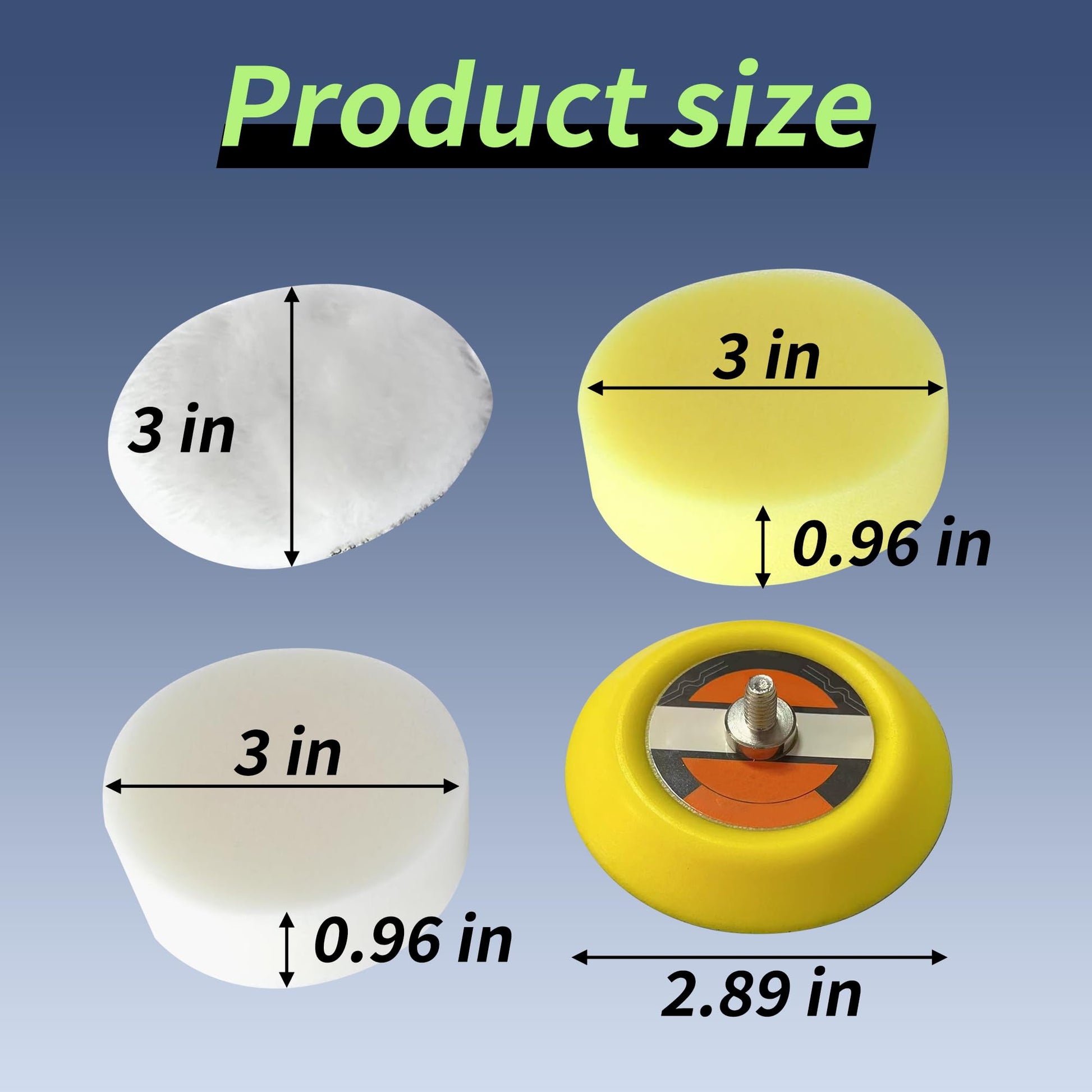 - Package Included: You will get 1 pcs polishing backing pad, 2 pcs white foam pads, 2 pcs yellow foam pads and 2 pcs wool pads. Suitable for the entire process from rough surface repair to fine mirror polishing