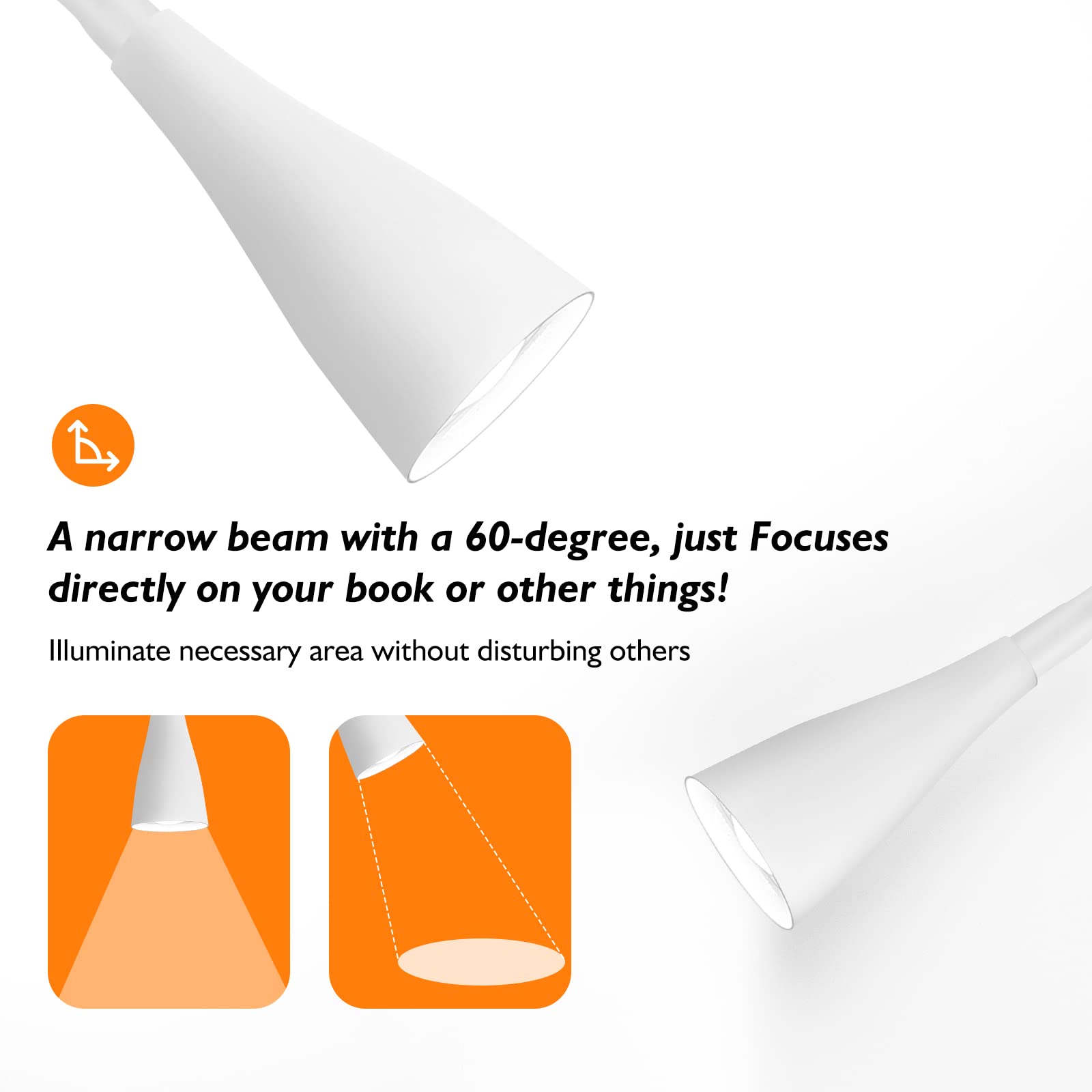 - 【Focused Directly】Focuses directly on your book while keeping the rest of the room dark, so as to give you the best reading experience without disturbing each other. 10 LEDs make the light bright enough. A narrow beam with a 60-degree lighting angle focused on the book and enjoys reading time without disturbing people next to you