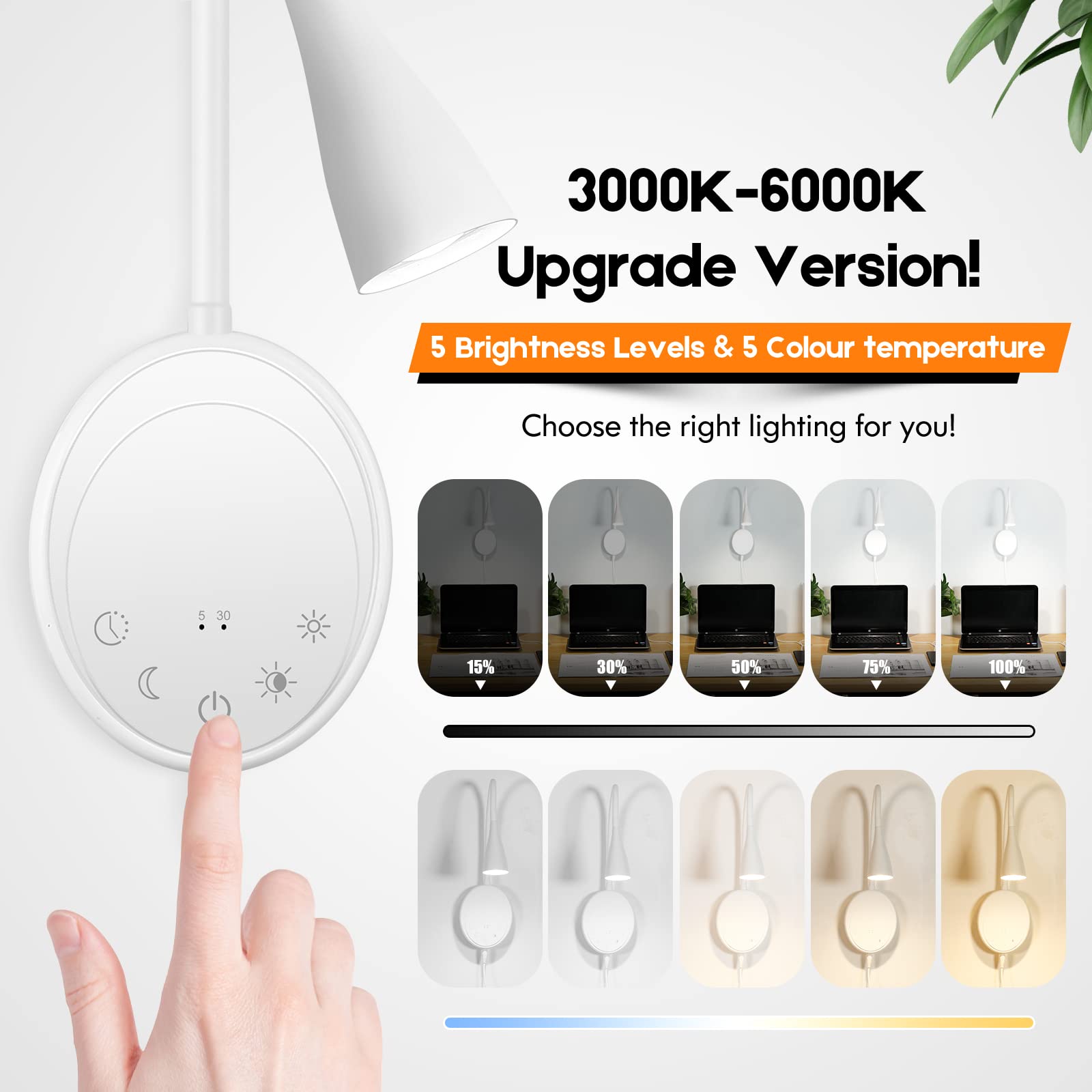 - 【Two timers & Flexible Gooseneck】Two timers function provides a true power saving and convenience & Make reading more regular. Gooseneck with 360° rotation at the head. It can be adjusted and directed to shine where you want it and without damage anything