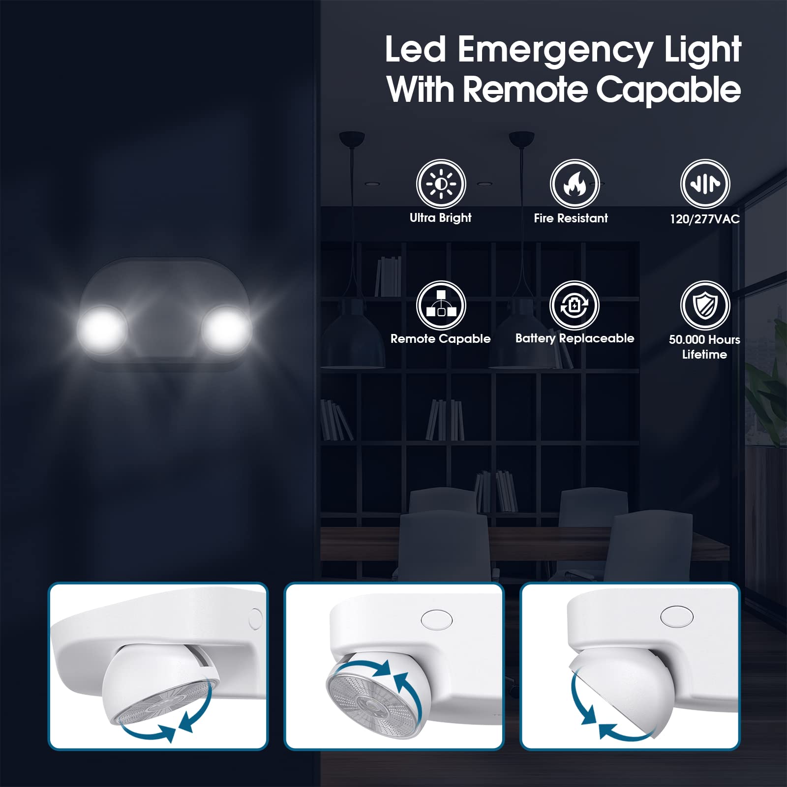 - đĄăUL Listed & Remote Capable ăThe remote head capable emergency lights approved by UL 924 certificate and comply with commercial grade. Injection-molded, flame-retardant and high impact thermoplastic housing, the emergency lighting will act as the main power source and provide power to the remote heads capability in case of a power outage. itâs great for when additional lighting is needed.