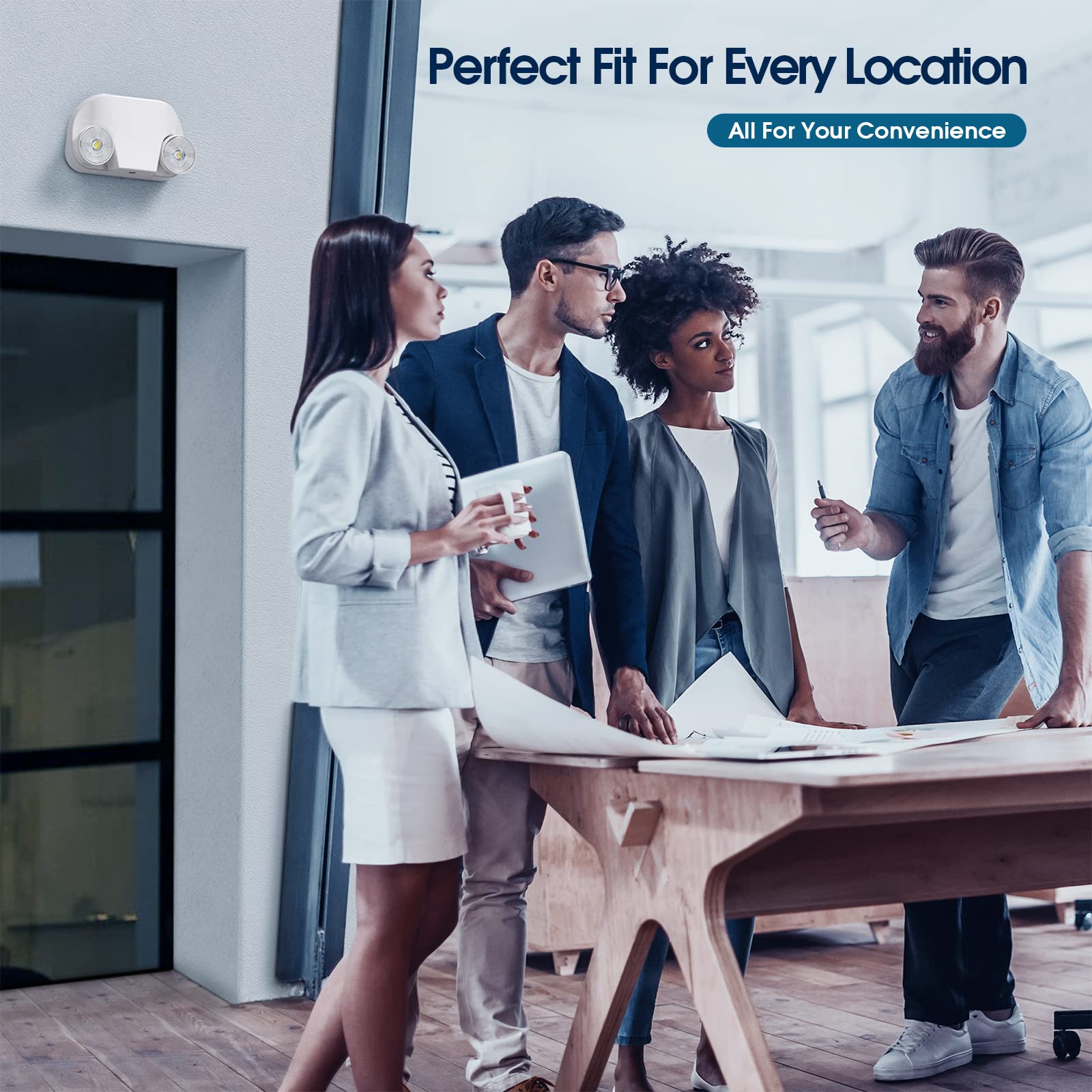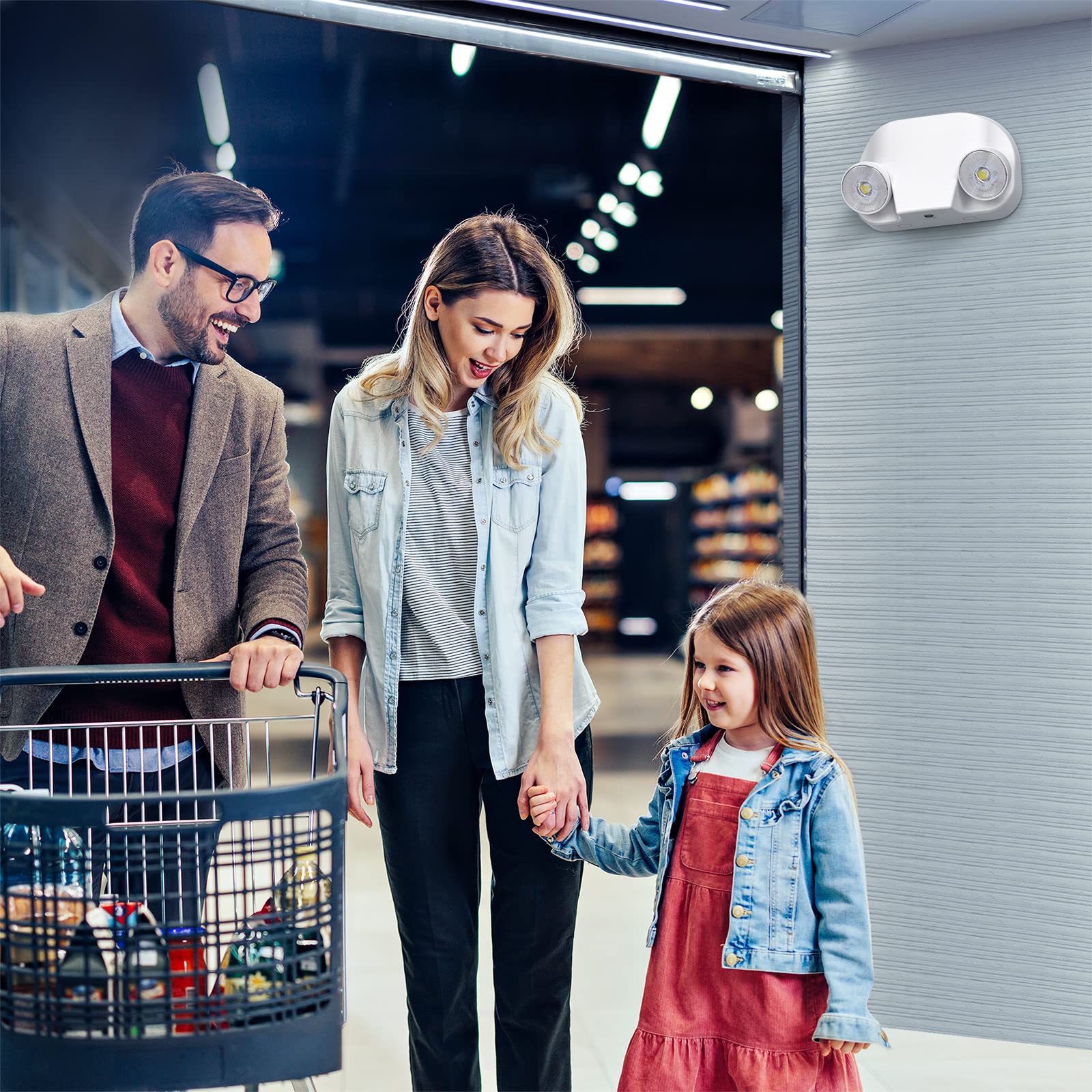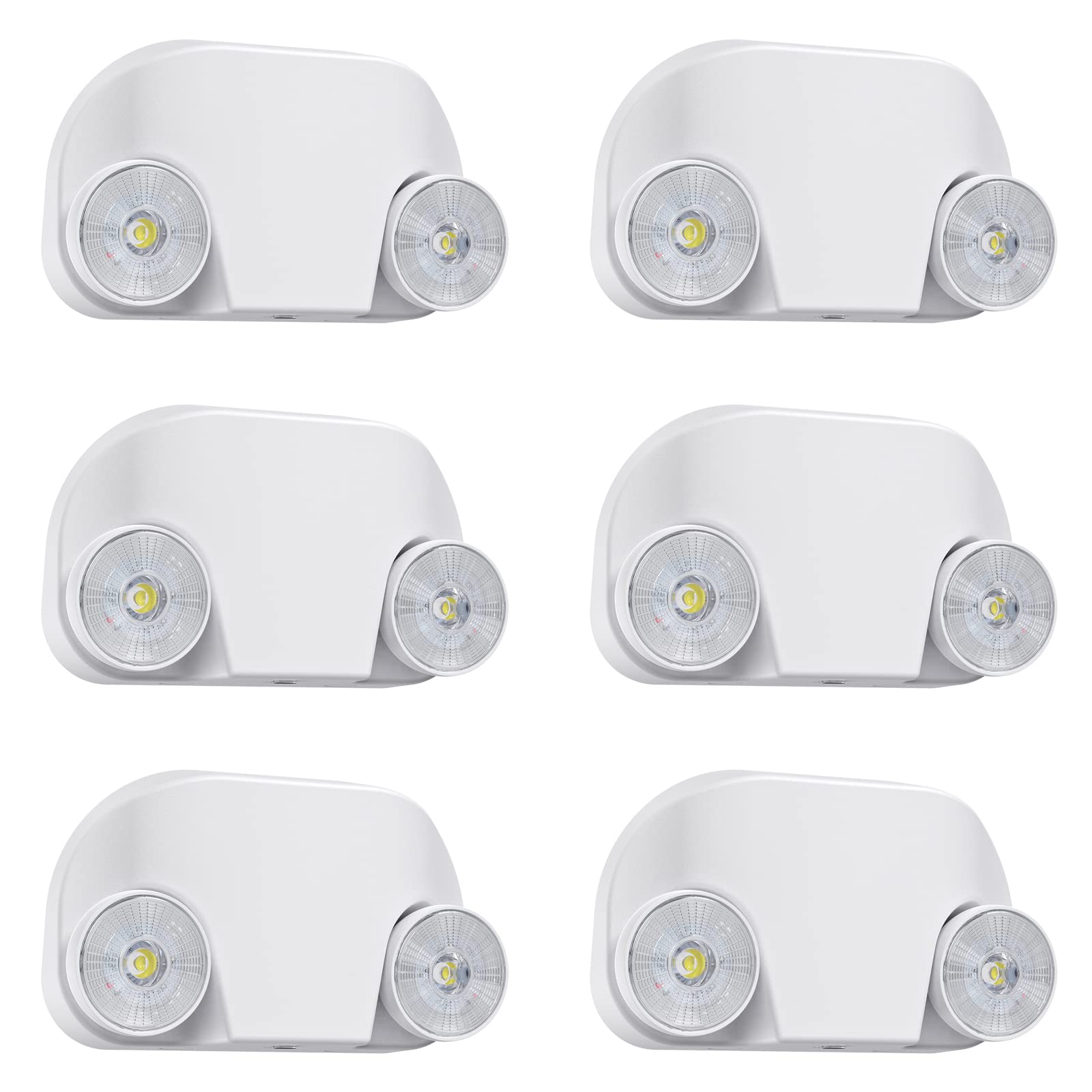 SASELUX Led Emergency Light with Remote Capable, Adjustable LED Lamp Heads Exit Lighting, Backup Battery White Emergency Lights, 120V-277V Dual Voltage, UL Certified (6 Pack)