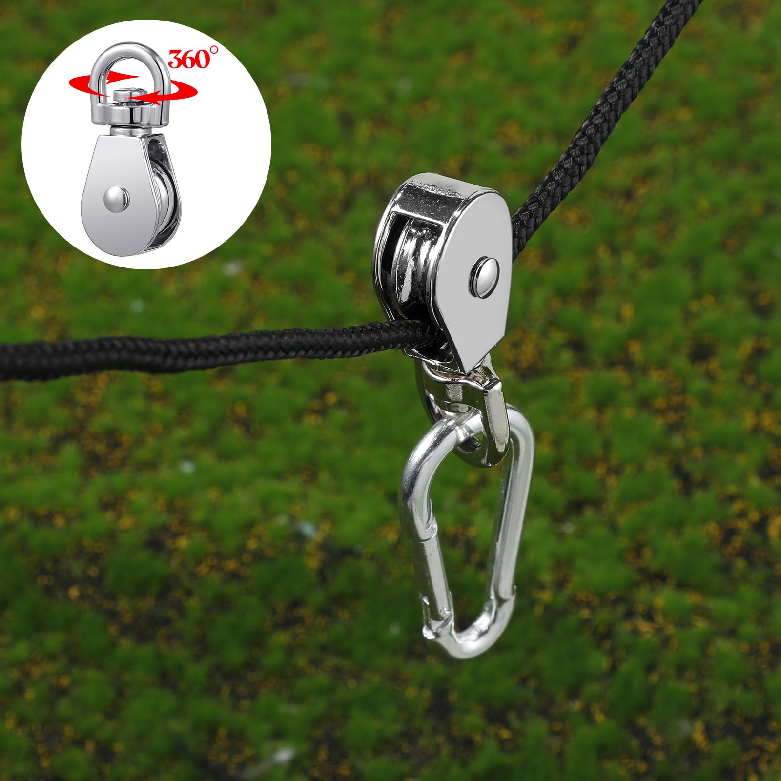 - Thoughtful and Ergonomic Design: wire cable pulley wheel is applied to lift the fixed top for conveniently rope handling, smooth roller provides good rope transverse movement, pulley rotating cylinder head is durable, which can be rotated 360 degrees to prevent rope knot; It can be applied outside to raise and lower