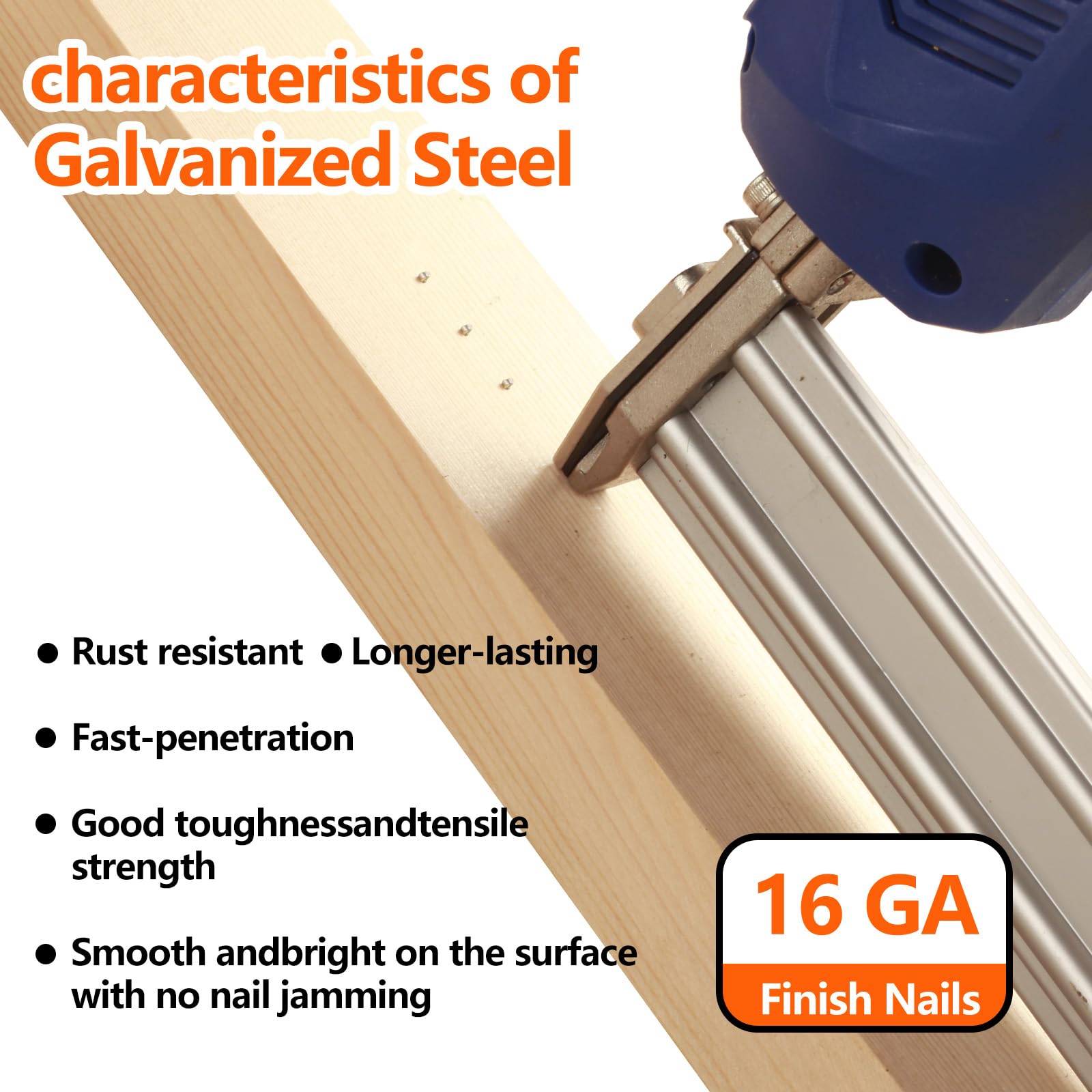 SITLDY Straight Finish Nails, 16 Gauge, 1200-Pack (1-1/2", 1-3/4", 2", 2-1/2", 300 Per Size), Galvanized, Assorted Size Project Pack