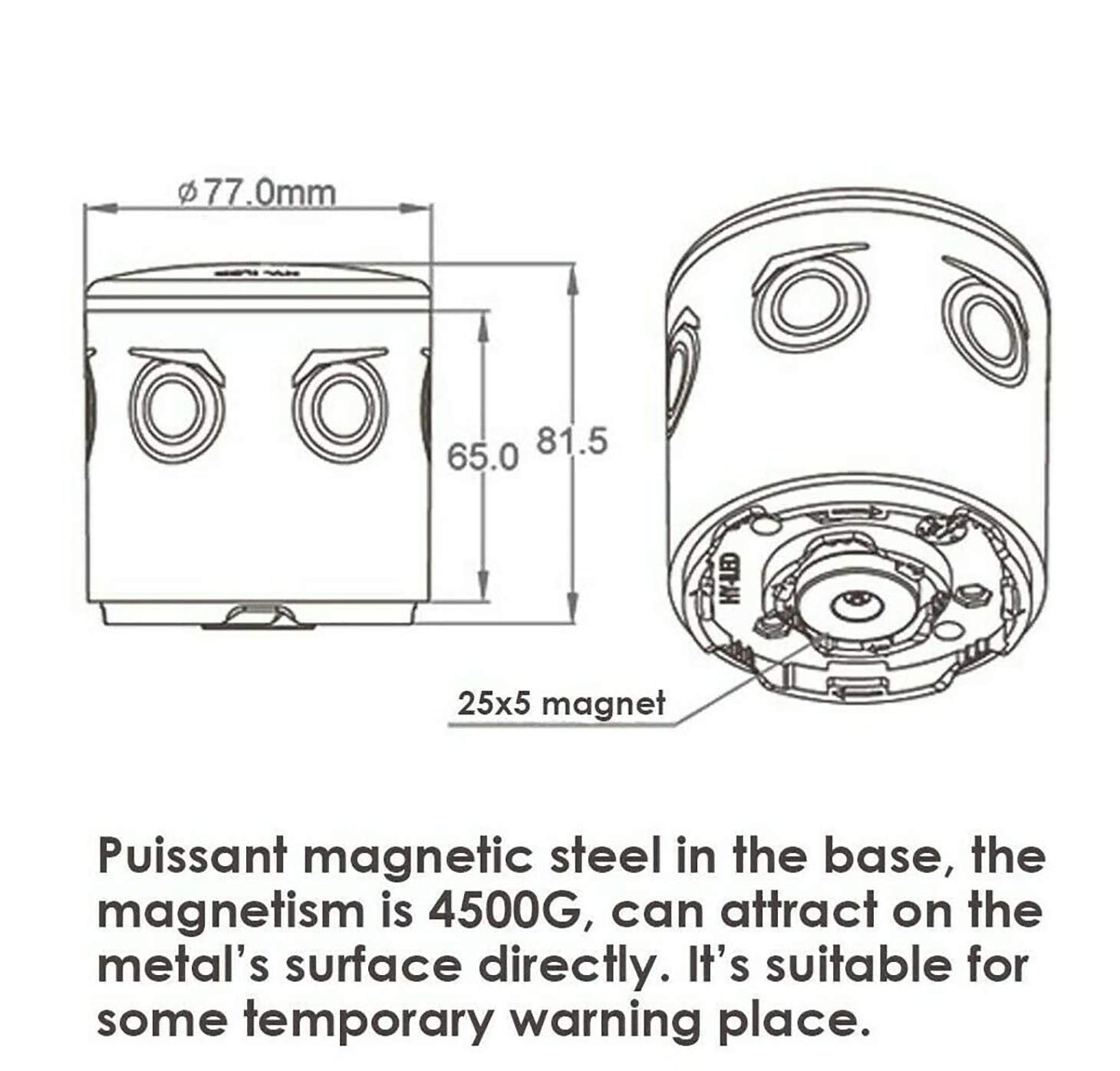 - Traffic Light with Super Strong Magnet: Solar traffic warning lights with 4500G magnet can attract iron and steel or other metal’s surface firmly and hard to fall off. Solar strobe warning light can be applied in every temporary warning place.