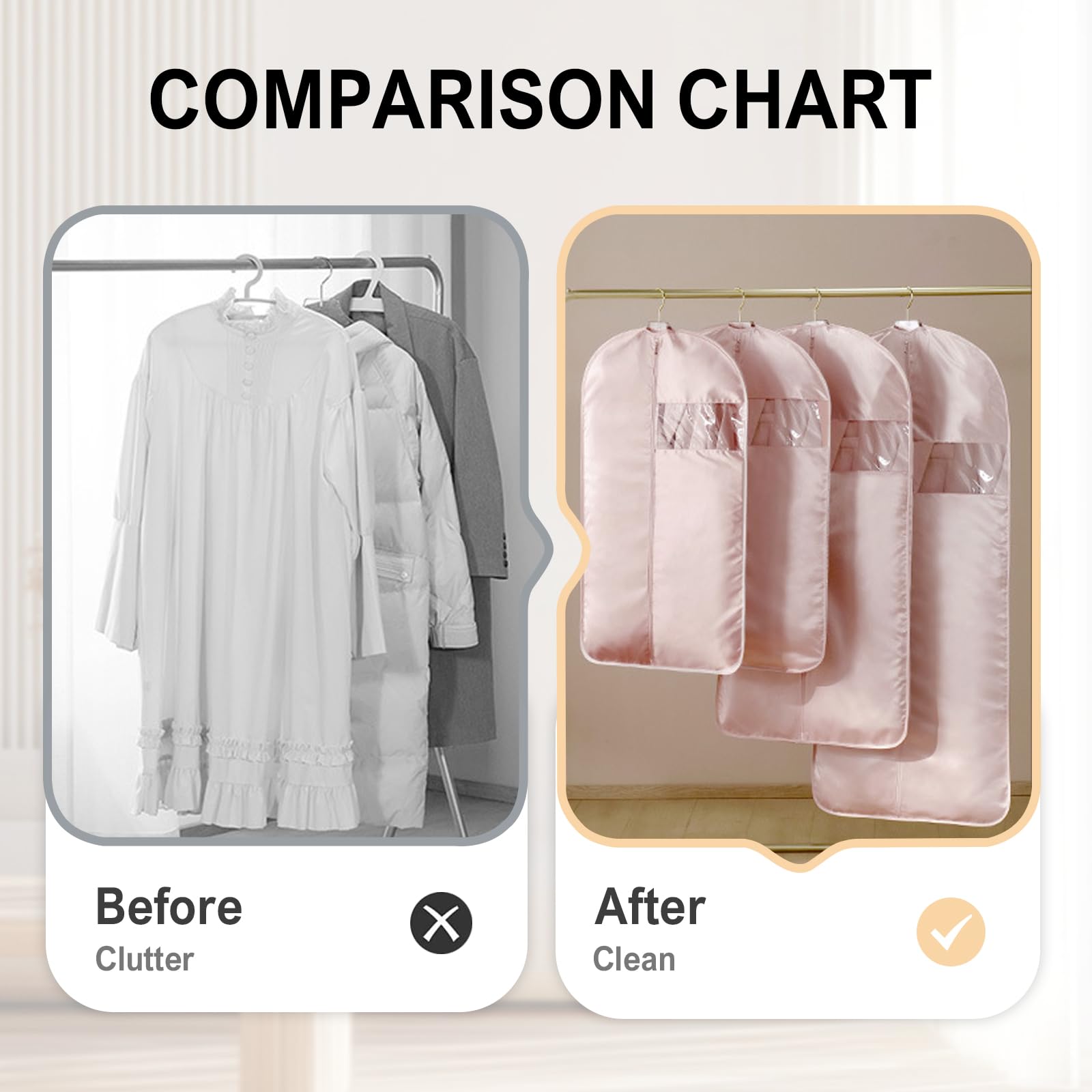 - ✨【Space-Saving Storage Solution】The space saving hanging garment bag with self-compressing zipper stores multiple coats, suits, or dresses, reducing clutter and maximizing closet space. Ideal for maintaining an orderly wardrobe and optimizing available storage areas.