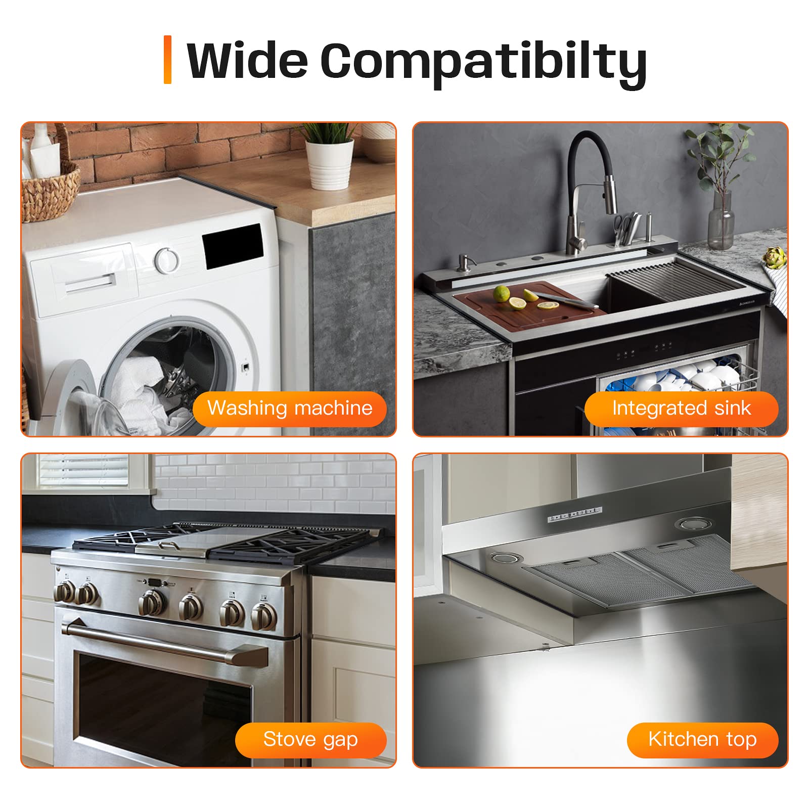 - 【PLEASE NOTE】 – Adjustable lengths range from 13.8 inches to 27.5 inches, this product is only suitable for gaps less than 17 mm(0.7inch) and greater than 2 mm, and is not suitable for use on stoves and countertops with uneven surfaces.