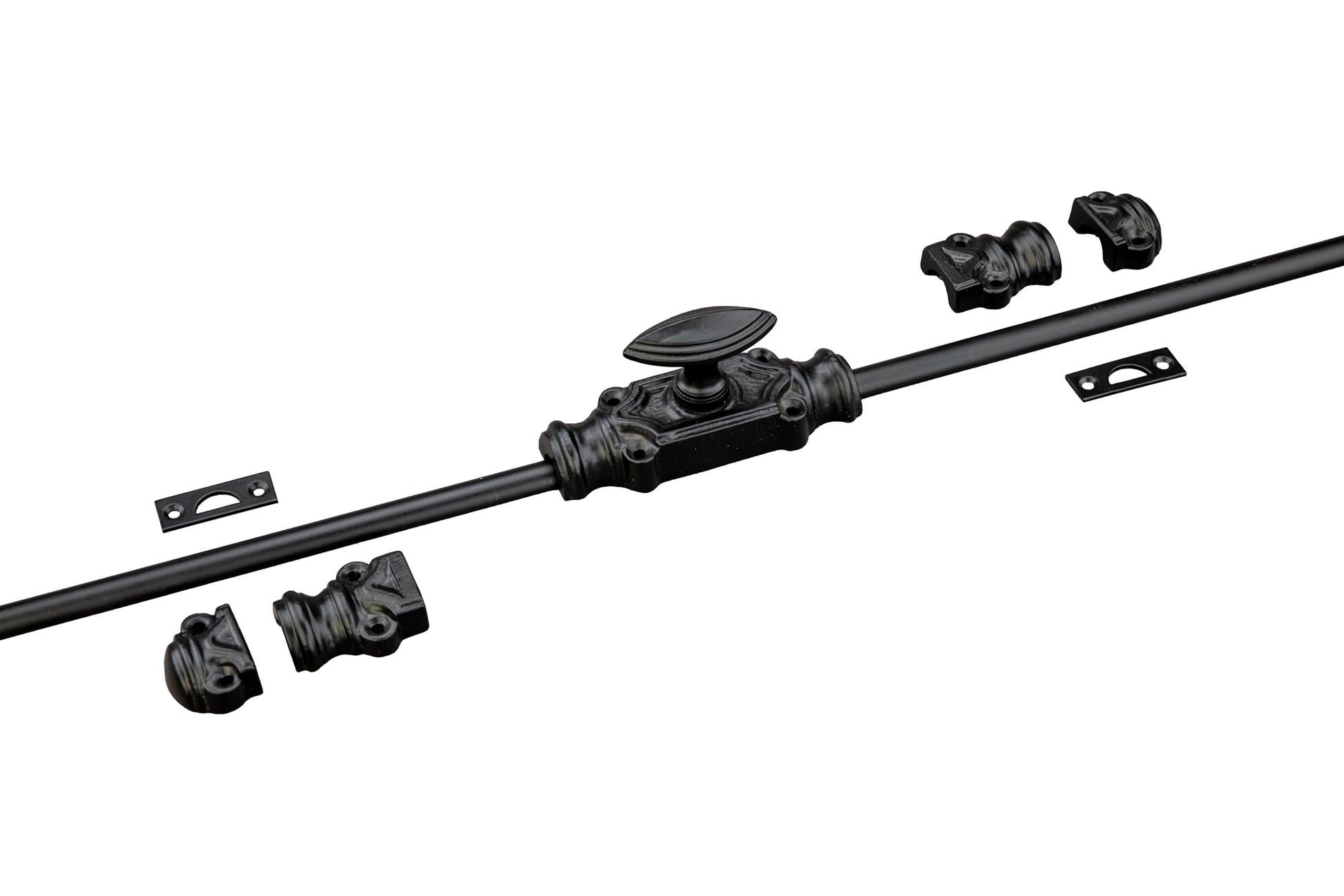STALLION HARDWARE Durable Iron Cremone Bolt 2' – Vintage Black Powder Coat, Customizable Rods, Ideal for Antique Cabinets & Small Doors, Stylish & Reliable Cabinet Lock Hardware