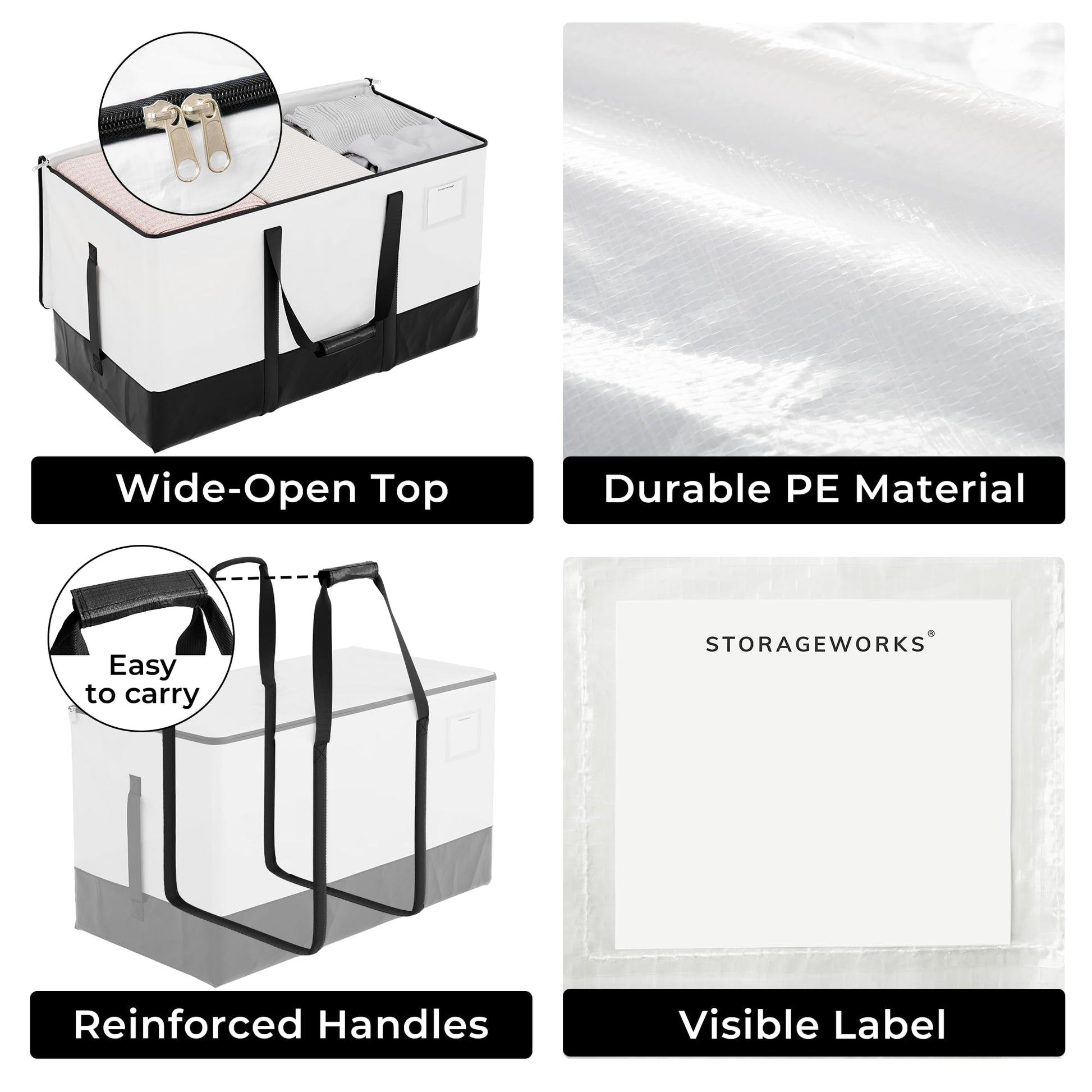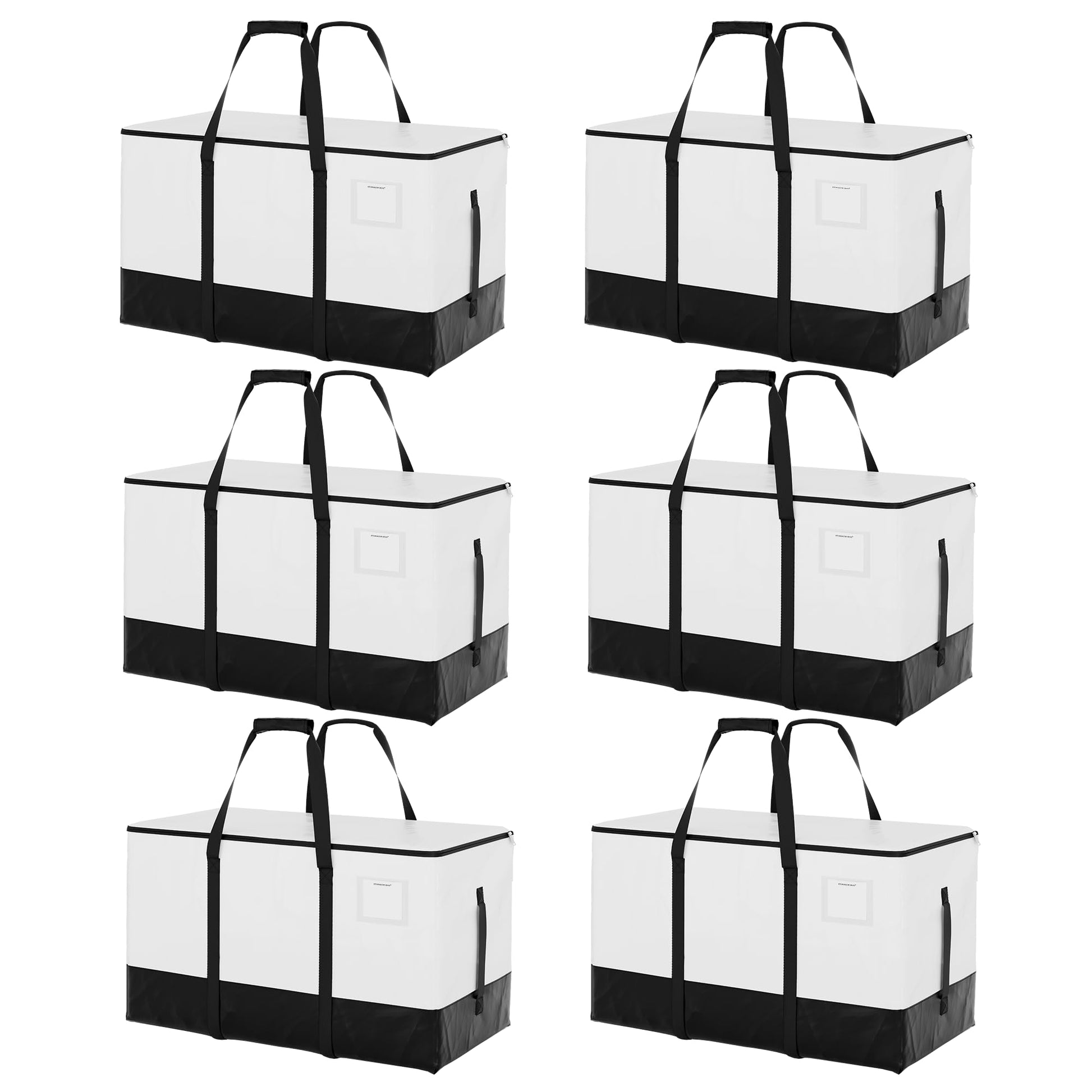 StorageWorks 6 Pack Extra Large Moving Bags, Heavy Duty Storage Packing Tote for Clothes, Alternative to Moving Boxes, Collapsible Moving Supplies with Reinforced Handles, White and Black