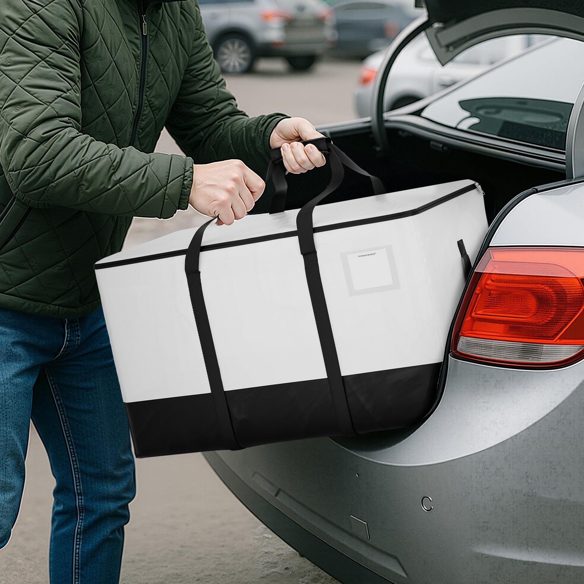 - Easy Access: 90 L large-capacity moving bags feature a U-shaped dual zipper opening, enabling quick and easy packing of clothes and household items.