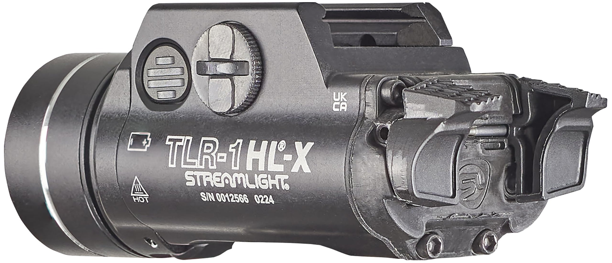 Details: The multi-fuel Streamlight TLR-1 HL®-X features a hinged face cap with robust release controls that allow for front-loaded battery changes without removing the light from the firearm. The light provides 1,500 lumens and 20,000 candela when powered by (2) Streamlight SL-B9® proprietary rechargeable battery packs (included). The light can also operate with (2) CR123A batteries (sold separately) to deliver 1000 lumens and 15,000 candela. Customizable rear paddle switches, momentary and constant on operation and a programmable strobe mode offer additional versatility for many applications.