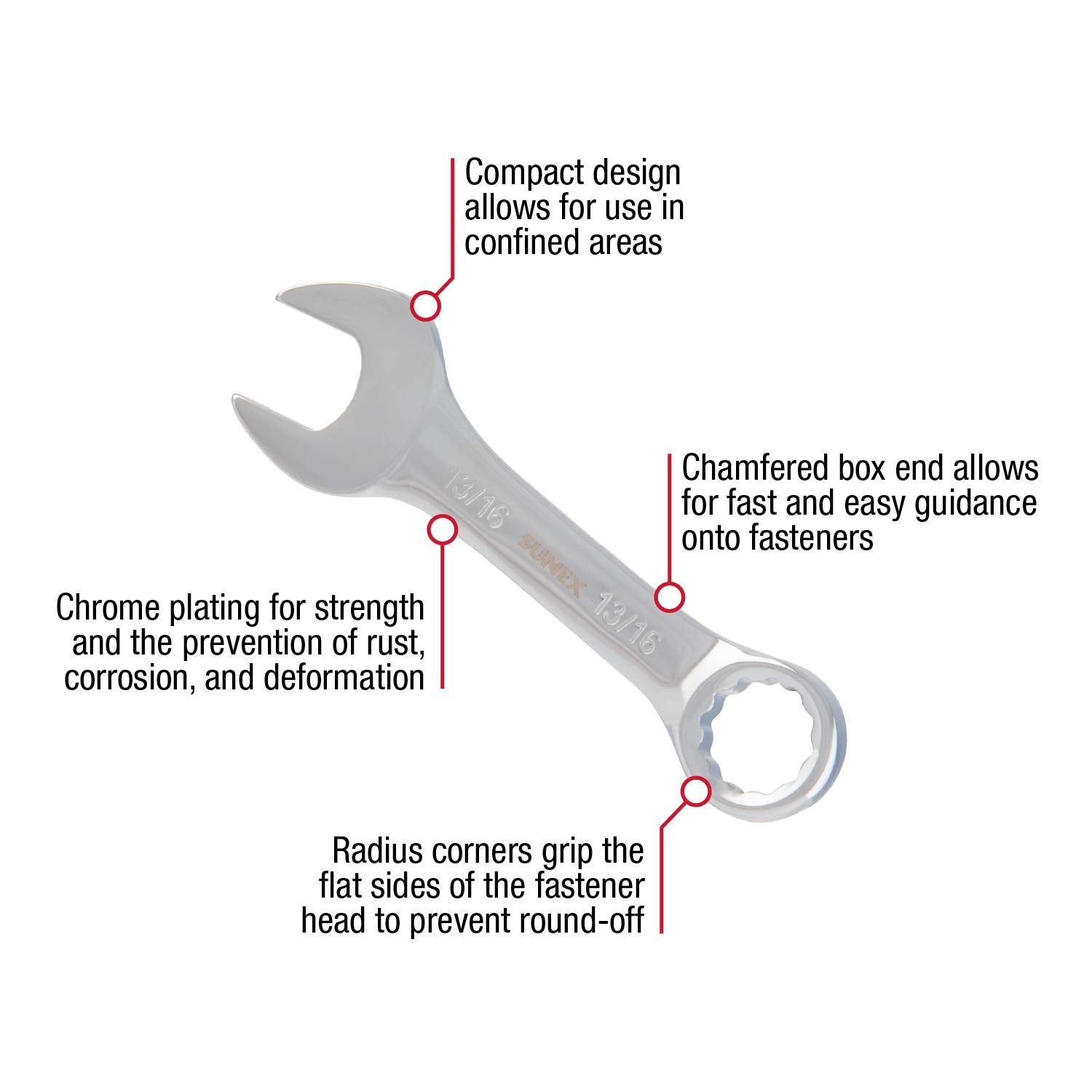 - CHAMFERED BOX END: Allows for fast and easy guidance onto fasteners.